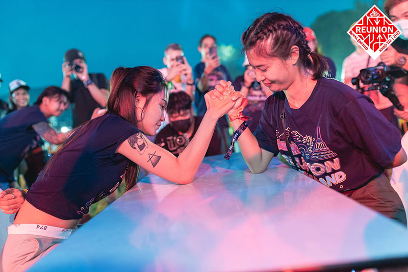 • เกมงัดข้อ:ทดสอบกำลังแขนของผู้เล่น ทั้งชายและหญิง โดยให้ผู้เล่น 2 คน หันหน้าเข้าหากันงอศอกของตัวเองวางบนโต๊ะ จับมือของอีกฝ่ายไว้ให้แน่น แล้วออกกำลังกดให้แขนของอีกฝ่ายล้มลงไปบนโต๊ะ ฝ่ายไหนที่ทำให้แขนของอีกฝ่ายล้มได้ได้เป็นผู้ชนะ