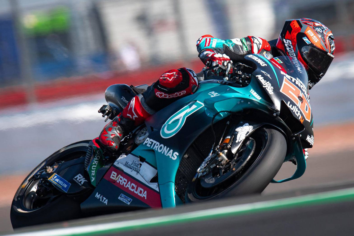 ขณะที่ ฟาบิโอ การ์ตาราโร่ #20 รุกกี้เฟรนช์แมน จาก ปิโตรนาส ยามาฮ่า เอสอาร์ที และ มาเวริค บีญาเลส #12 ดาวบิดสแปนิช สังกัดมอนสเตอร์ เอเนอร์จี้ ยามาฮ่า โมโตจีพี ได้เริ่มเกมจากริดที่ 4 และ 6