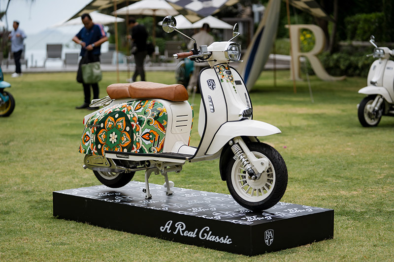 โอกาสนี้ คุณสตีฟ โอลิเวอร์ CEO Royal Alloy และ คุณธนกร ลีละพัฒนกิจ ผู้อำนวยการฝ่ายขายและการตลาด Royal Alloy Thailand ขึ้นเวทีเผยนโยบายสำคัญๆหลายประเด็น เริ่มจากประกาศราคาเปิดตัวจำหน่าย สกู๊ตเตอร์สไตล์คลาสสิก รุ่น GP150F MT อย่างเป็นทางการราคาจำหน่าย ที่ 119,900 บาท (4 สี)