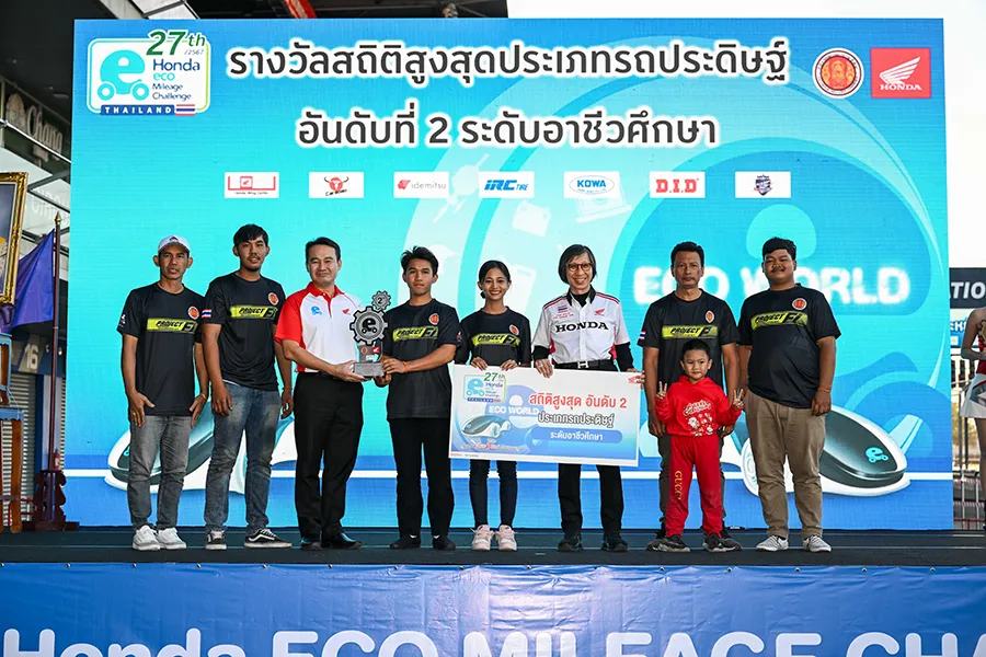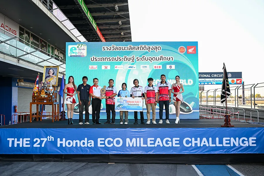 การแข่งขัน “ฮอนด้าประหยัดเชื้อเพลิง” ครั้งที่ 27 ประจำปี 2025 จบลงด้วยความสำเร็จอย่างงดงาม รางวัลชนะเลิศเป็นของทีมกรุงเก่า1 จากวิทยาลัยเกษตรและเทคโนโลยีศูนย์ศิลปาชีพบางไทร ที่สร้างสถิติค่าประหยัดด้วย 897.656 กิโลเมตร/ลิตร ครองถ้วยพระราชทานสมเด็จพระกนิษฐาธิราชเจ้า กรมสมเด็จพระเทพรัตนราชสุดา สยามบรมราชกุมารี พร้อมคว้ารถจักรยานยนต์รุ่น Honda Supercub ไปครอบครอง และเงินพัฒนาทีมมูลค่าสูงถึง 60,000 บาท และตามด้วยอันดับรองชนะเลิศเป็นของทีมปราบไตรจักร วิทยาลัยสารพัดช่างพิษณุโลก ด้วยสถิติ 877.242 กิโลเมตร/ลิตร คว้ารถจักรยานยนต์รุ่น Honda Wave 110i พร้อมเงินพัฒนาทีมมูลค่า 40,000 บาท