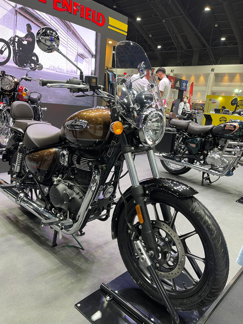 นอกจากนี้มีมอเตอร์ไซค์ยอดนิยมของ Royal Enfield อย่างContinental GT และ Interceptor สองดาวดัง 650Twin รวมถึง METEOR350 อีซี่ครุยเซอร์ที่ขายดีเช่นกัน พร้อมกับสินค้าอุปกรณ์เครื่องแต่งกายที่นำมาจำหน่ายครบถ้วน อีกหนึ่งประเด็นสำคัญ คุณวิมัลซุมบ์ลี หัวหน้าฝ่ายธุรกิจประจำภาคพื้นเอเชียแปซิฟิกฯ กล่าวเพิ่มเติมถึงการร่วมมือในการประกอบและผลิตรถจักรยานยนต์ครั้งแรกในประเทศไทยนอกเหนือจากโรงงานในประเทศอินเดีย เป็นการตอกย้ำความมุ่งมั่นที่จะเติบโตในประเทศไทยและภูมิภาคเอเชียแปซิฟิก ซึ่งเตรียมขึ้นไลน์ผลิตประกอบรถ ROYAL ENFIELD ภายในประเทศไทยในปี 2565