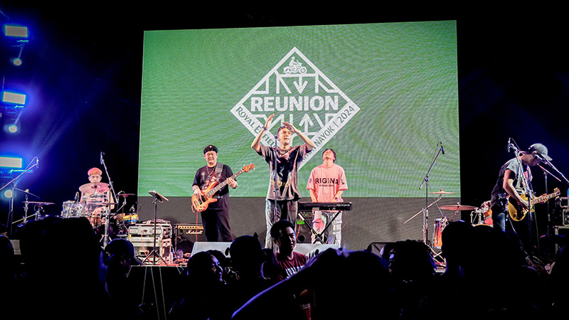 กิจกรรมช่วงเย็น คุณ อนุจ ดัว – หัวหน้าฝ่ายธุรกิจ โรยัล เอ็นฟีลด์ ภูมิภาคเอเชียแปซิฟิค (Head of Business, Royal Enfield-APAC) นำทีมผู้สนับสนุน ขึ้นกล่าวเปิดงานพร้อมขอบคุณผู้ร่วมกิจกรรมที่ให้การตอบรับเป็นอย่างดี เสร็จแล้วตะลุยความมันส์กันต่อด้วยเกมแข่งขันงัดข้อ, แข่งกินเบียร์ แจกของรางวัลจากแบรนด์ต่างๆที่มาออกบูธจำหน่ายสินค้าราคาพิเศษ ไม่ว่าจะเป็น น้ำมันเครื่อง ELF Lubricants, Vredestein, Gopro, OKD, hyperice thailand by mentagram และ แจกวัล Lucky Draw สุดพิเศษให้ผู้โชคดีที่ได้รหัสลับใต้เก้าอี้นั่ง ปิดท้ายด้วยคอนเสิร์ต เป้ MVL และ วง ALADIN ที่ทำให้ชาวโรยัล เอ็นฟีลด์ ฟินไปกับงาน REUNION 2024 ท่ามกลางลมหนาว!!