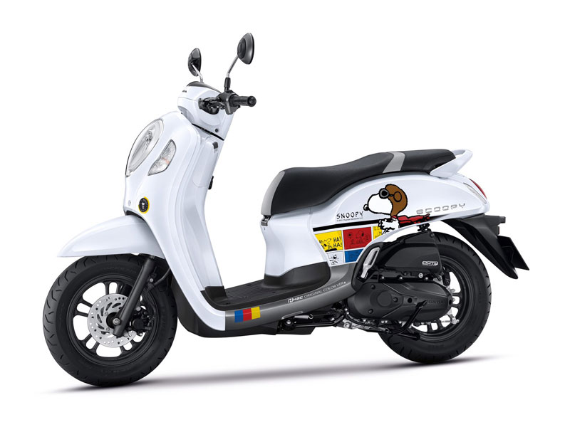 New Honda Scoopy Snoopy Limited Edition ได้รับการออกแบบภายใต้คอนเซปต์ “สนู๊ป…หลุดกรอบ” ครั้งแรกของโลกกับการผสาน 2 ไอคอนแห่งความสนุกเข้าไว้ด้วยกันอย่างลงตัว นั่นคือ Scoopy ไอคอนรถจักรยานยนต์ที่โดนใจวัยรุ่นไทย และ Snoopy ไอดอลแห่งความกวนจากการ์ตูน 4 ช่องของหนังสือพิมพ์อเมริกัน ตัวรถถ่ายทอดคาแรกเตอร์ที่เป็นเอกลักษณ์ของ Snoopy และ Charlie Brown อย่างเด่นชัด เท่ทุกมุมมอง ด้วยลวดลายที่ไม่เหมือนใคร ด้านหนึ่งเป็นการ์ตูน Snoopy ที่มาในชุดนักบินมาดเท่ และอีกด้านหนึ่งเป็นเพื่อนซี้คู่ใจอย่าง Charlie Brown เสริมความเท่ด้วยการเล่นแถบสีเหลือง แดง น้ำเงิน บนพื้นสีขาวของตัวรถ พร้อมกับบ่งบอกความเป็นลิมิเต็ดด้วยแบดจ์ Scoopy x Snoopy