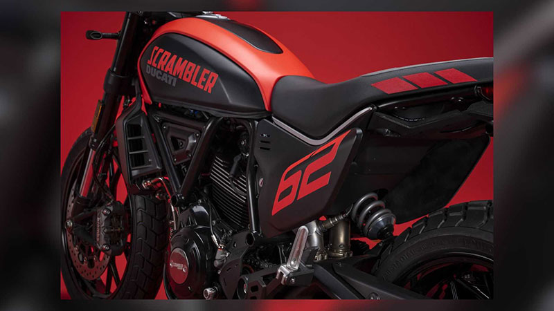 Scrambler Full Throttle – รุ่น “ท็อปสุด” ได้ควิกชิฟเตอร์ติดรถเป็นแสตนดาร์ด แผ่นป้ายหมายเลข 62 แปะด้านข้าง (ปี 1962 ที่ Scrambler ตัวแรกออกขาย) ปลายท่อ Termignoniไฟเลี้ยวแต่ง LED บังโคลนหน้าสั้น ไม่มีบังโคลนหลัง แท็กสีแดงข้างล้อ และแผ่นกันแคร้งล่างสไตล์รถแข่ง Flat-track ในชุดสีแบบเดียวกับรถแข่ง GP19 แดง-ดำ