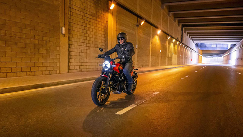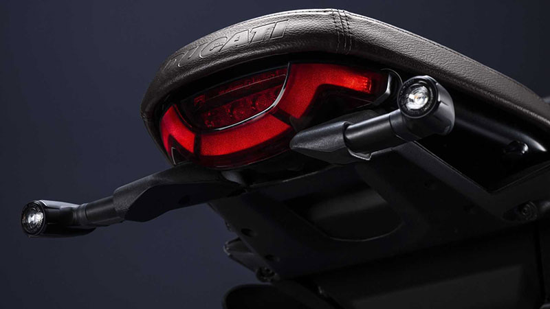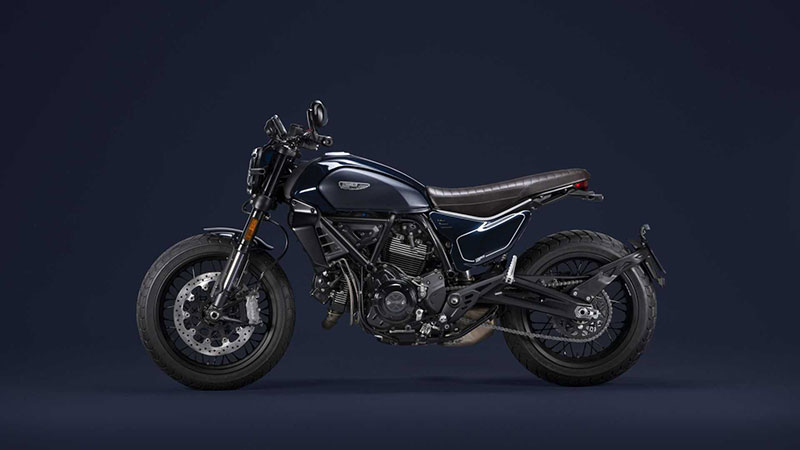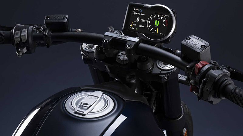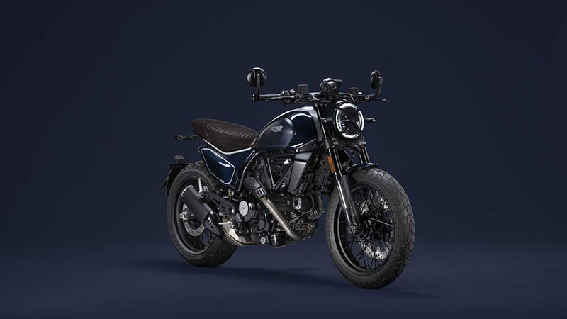 Scrambler Nightshift – “ดีไซน์ดุที่สุด” ใน 3 รุ่นใหม่นี้ด้วยสไตล์คาเฟ่เรซเซอร์คมเข้ม พร้อมแฮนเดิลบาร์ทรงต่ำ กระจกปลายแฮนด์ วงล้ออัลลอยสีดำ ชุดสีน้ำเงินเข้มเกือบดำ “Nebula Blue” เบาะหนังปาดสีดำ เพลทหมายเลขด้านข้าง บังโคลนหน้าชิ้นเล็ก ไม่มีบังโคลนหลัง(ใส่กันดีดมาแทน) และไฟเลี้ยวแต่ง LED ดวงเล็กสไตล์สปอร์ต