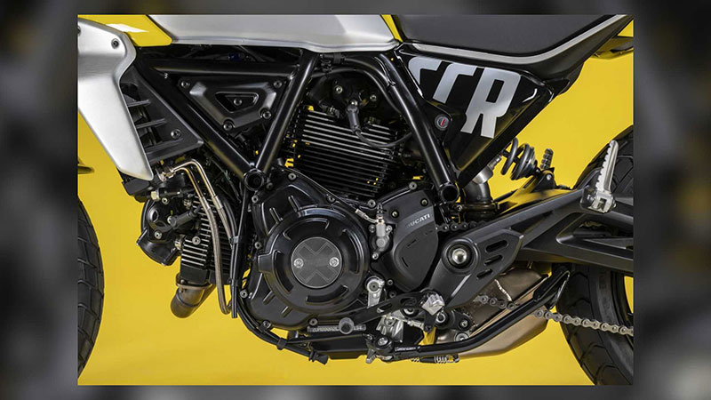1. เครื่อง 803 ซีซี. Desmodue L-Twin ที่น้ำหนักเบาลงกว่า 2.5 กก. ด้วยชุดคลัทช์ ไฮดรอลิก 8 แผ่น และฝาปิดคลัทช์ “X” ดีไซน์