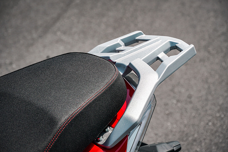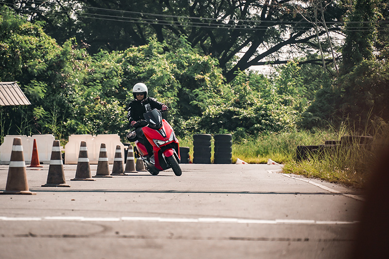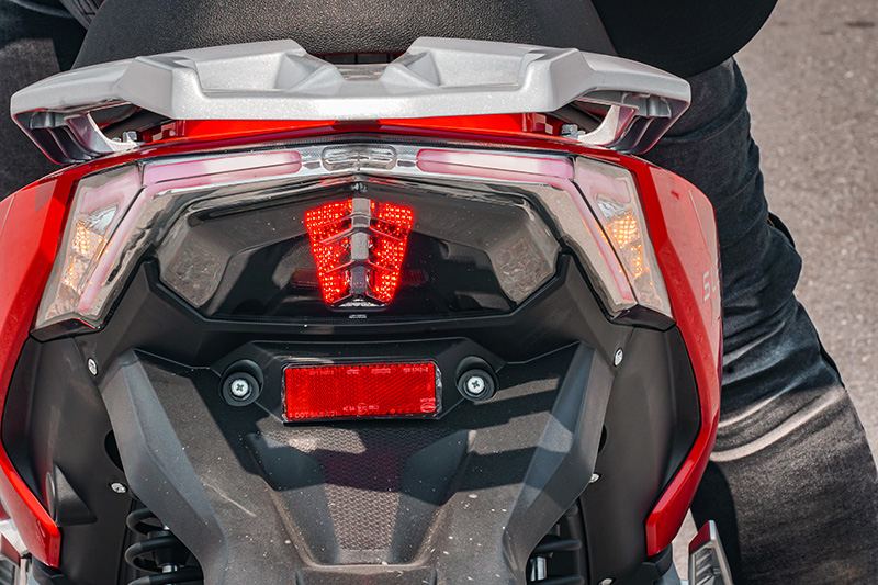 4. มิติตัวรถขับขี่ไม่ยากครับ ความสูงเบาะใกล้เคียงกับสกู๊ตเตอร์เครื่องยนต์ขนาด 150-200 ซีซี. คนตัวเล็กอาจบัลเลต์เล็กน้อย ส่วนตำแหน่งวางเท้าคนขี่มีทั้งลักษณะปกติและเอียงองศา ออกแบบมาเผื่อคนขายาว