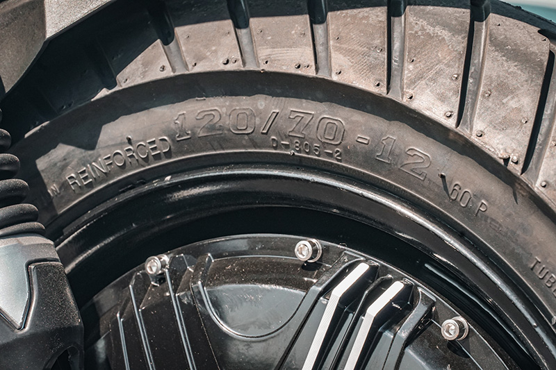 8. ยางหน้า-หลัง ใช้ยางจุ๊บเลสขนาดเดียวกัน คือ 120/70-12 ของ DEESTONE จากที่ลองในแทรค(แห้ง) อาการยางถือว่าสอบผ่าน สำหรับคนที่สงสัยว่าจะเปลี่ยนยางยังไง เคล็ดลับคือ การถอดล้อหลังเพื่อเปลี่ยนยางจะต้องเอาออกทางด้านขวาของรถนั่นเอง