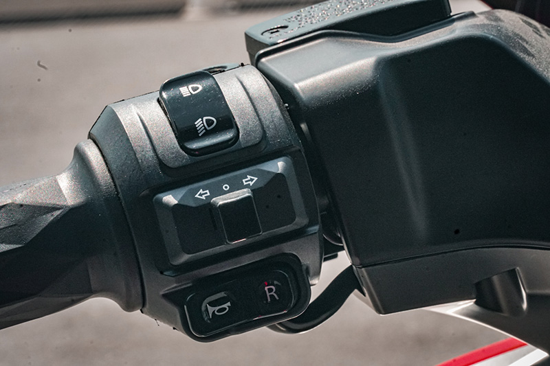 3. มีโหมด “ถอยหลัง” เพียงกดปุ่มตำแหน่งหัวแม่มือที่แฮนด์ฝั่งซ้าย จนมีตัว R ขึ้นที่หน้าจอ จากนั้นบิดคันเร่งถอยหลังได้ง่ายๆ