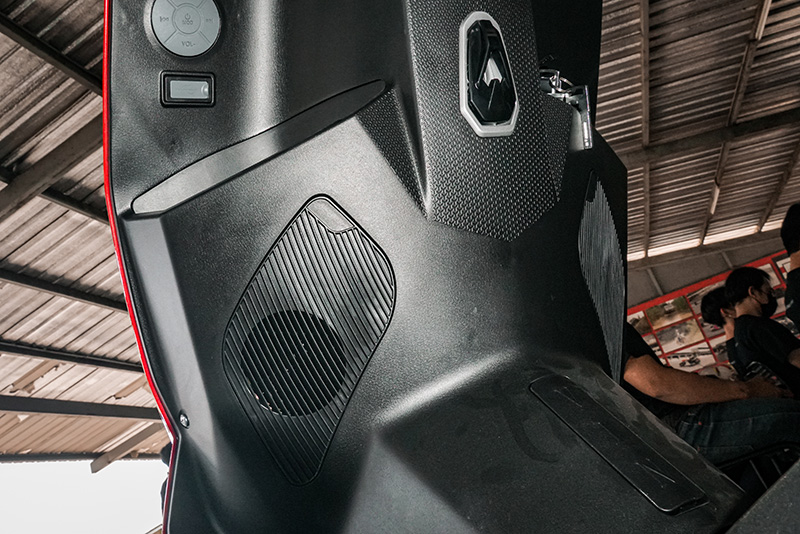 10.จอ Full Digital ข้อมูลให้มาครบๆ ตัวรถมีลำโพงบลูทูธอยู่ที่สองด้านของคอนโซลซ้าย-ขวา เชื่อมกับสมาร์ทโฟน (และโอเปอร์เรทผ่านปุ่มที่ฝั่งซ้ายของคอนโซน) จุดนี้เอาไว้ใครอยากใส่ซาวน์ให้รถมีเสียงบ้างเวลาที่ผ่านไปในจุดที่หมิ่นเหม่ต่อการเกิดอุบัติเหตุจากการไม่ได้ยินเสียงรถนั่นเอง!!