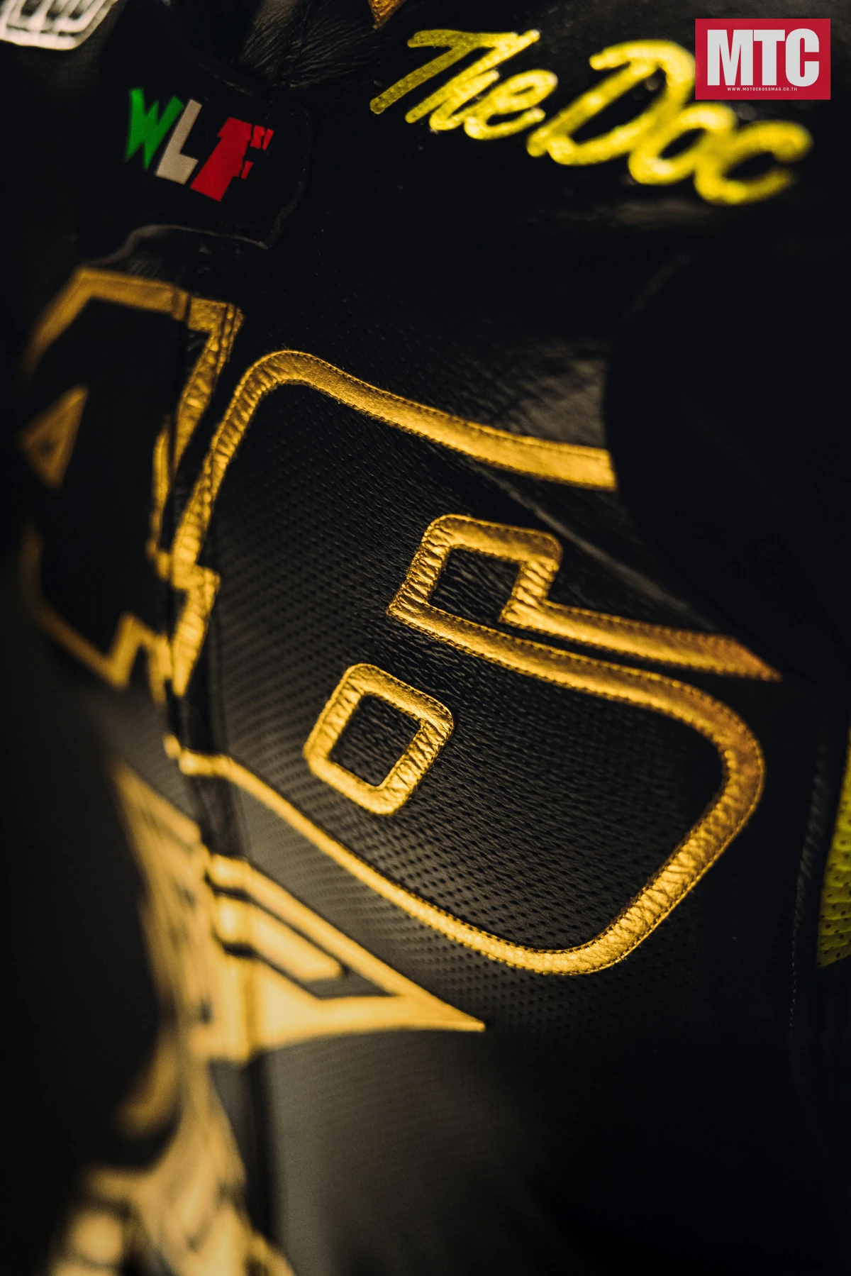 และเพื่อเป็นการเฉลิมฉลองในโอกาสสุดพิเศษนี้ Dainese และ AGV เปิดตัวคอลเล็คชันพิเศษ ชุดเรซซิ่งสูท Demone GP D-air® 3x และหมวกกันน็อก Pista GP RR ที่มาพร้อมลวดลายพิเศษที่มีชื่อว่า Soleluna Vale46 Anniversario ที่สร้างขึ้นมาให้เขาเป็นพิเศษ เป็นการผสมผสานกันระหว่างสีเหลืองฟลูออเรสเซนต์พิเศษของ Rossi เข้ากับชุดสีดำเจ็ตแบล็คและดีเทลพิเศษที่ทำจากทองคำเปลว
