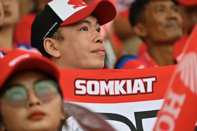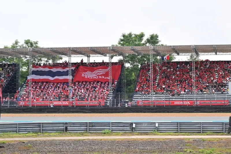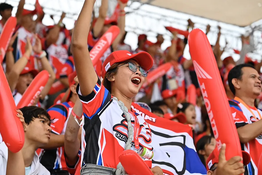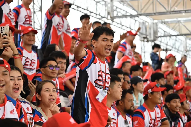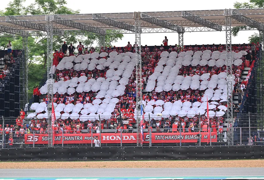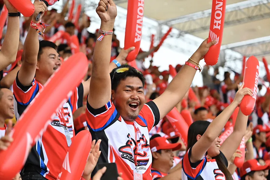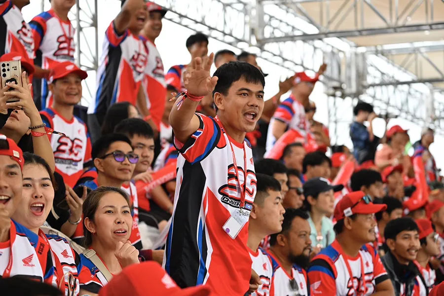 ”จันทรา สแตนด์“ และ “ฮอนด้า สแตนด์ ” สร้างปรากฏการณ์กองเชียร์อย่างยิ่งใหญ่ เต็มรูปแบบสู่สายตาชาวโลก รวมพลังแฟนชาวไทยส่งพลัง แรงใจ ให้ 2 นักบินไทย ทั้ง “ก้อง-สมเกียรติ” และ “ก๊องส์-ธัชกร” พร้อมอุปกรณ์เชียร์ครบมือ ด้วยการโชว์ปล่อยธงชาติไทยผืนยักษ์ และป้ายสีแปลอักษร พร้อมเทคนิคการกางร่มสลับสีเป็นหมายเลข 35 ของ “ก้อง” สมเกียรติ จันทรา ยอดนักบิดฮีโร่ชาวไทยในรุ่นโมโตทู จาก อิเดมิตสึ ฮอนด้า ทีม เอเชีย และ “ก๊องส์” ธัชกร บัวศรี ดาวรุ่งนักบิดไทยในรุ่นโมโตทู เจ้าของหมายเลข 5 จาก ฮอนด้า ทีม เอเชีย