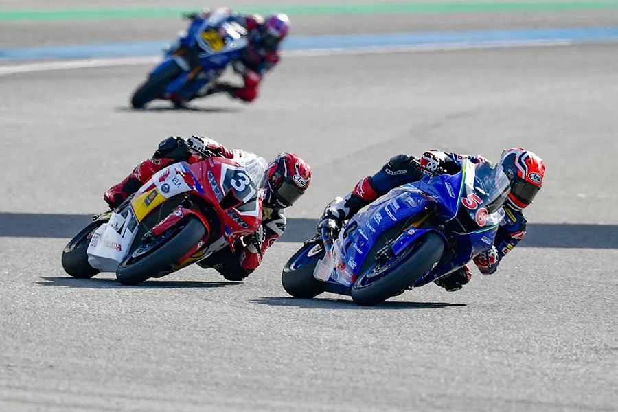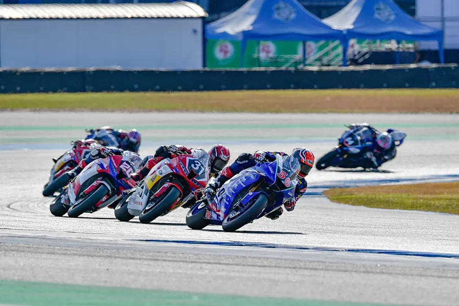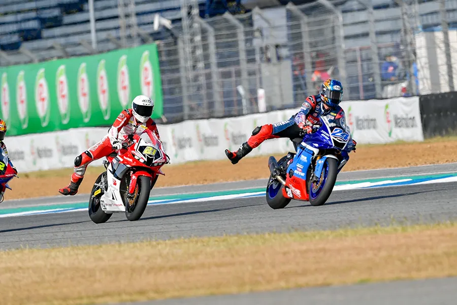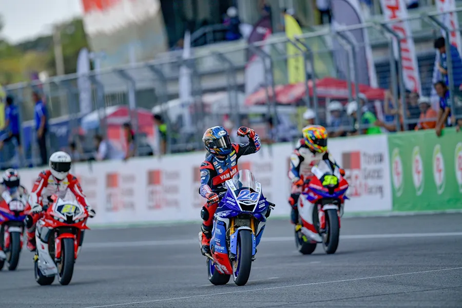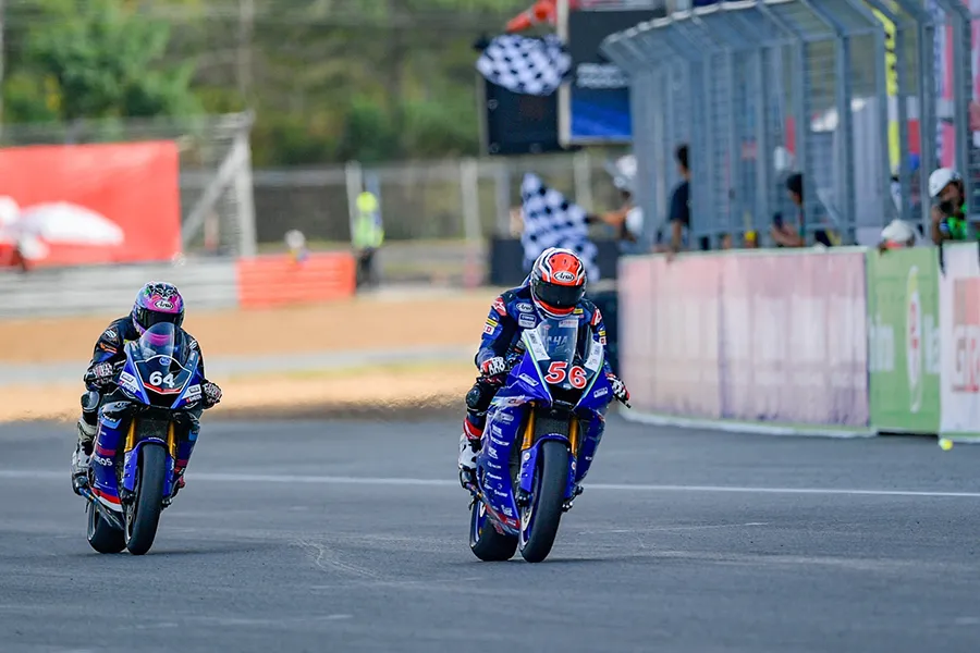 เดือดระอุ!!! สำหรับเกมการชิงชัยในรุ่น Super Sport 600 cc ในเรซที่ 1 ของศึก “ชิงแชมป์เอเชีย” รายการ FIM Asia Road Racing Champion Ship 2024 สนามที่ 6 ที่จัดขึ้นในช่วงบ่ายวันเสาร์ที่ 7 ธันวาคม 2567 ณ สนามช้าง อินเตอร์เนชั่นแนล เซอร์กิต จ.บุรีรัมย์ ซึ่งคู่หูนักแข่งไทยยามาฮ่าลงชิงชัยด้วยการออกสตาร์ทในแถวหน้า โดย “โฟลท – รัฐพงษ์ วิไลโรจน์” ที่ใช้รถแข่ง YZF-R6 หมายเลข 56 สังกัดทีม YAMAHA THAILAND RACING TEAM สตาร์ทในกริดที่ 2 ส่วนทางด้าน “แสตมป์ – อภิวัฒน์ วงศ์ธนานนท์” นักแข่งจาก YAMAHA THAILAND RACING TEAM ที่ลงแข่งในสังกัดทีม YAMAHA Tekhne Racing Team Asia ที่กำลัง “ลุ้นแชมป์” กับรถแข่ง YZF-R6 หมายเลข 24 สตาร์ทจากกริดที่ 3