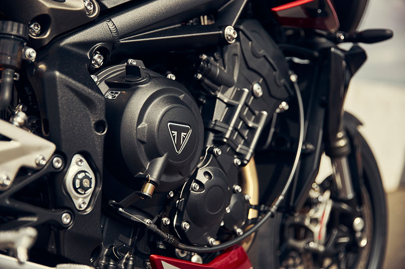 ด้วยการอัปเกรดครั้งใหญ่ที่ได้รับจากโปรแกรมพัฒนาเครื่องยนต์การแข่งขัน Moto2™ ทำให้ตอนนี้เครื่องยนต์สามสูบ 765 ซีซี ให้พละกำลังและสมรรถนะที่ 120 แรงม้า สำหรับรุ่น R ใหม่ และมอบพละกำลังสูงสุดระดับแนวหน้าสูงสุดที่ 130 แรงม้า สำหรับรุ่น RS และรุ่น Moto2™ นอกจากนี้แรงบิดยังเพิ่มขึ้นในทั้งสามรุ่น ตั้งแต่ช่วงรอบต่ำไปจนถึงรอบความเร็วสูงสุดที่ 80 นิวตันเมตร จุดเริ่มต้นของรถจักรยานยนต์สามสูบด้วยการผสมผสานระหว่างแรงบิดช่วงรอบต่ำและช่วงรอบกลางที่ใช้งานได้ ส่งมอบสมรรถนะสุดเร้าใจทำให้การขับขี่มีความตื่นเต้นและมีเอกลักษณ์เฉพาะตัว อันเป็นผลจากเครื่องยนต์ที่มีชื่อเสียงระดับโลกที่สามารถตอบสนองได้ดีกว่าที่เคย นอกจากการอัปเดตส่วนประกอบที่สำคัญแล้ว อัตราทดเกียร์ที่สั้นลงยังส่งผลให้อัตราการเปลี่ยนเกียร์เพื่อเร่งมีความเร็วขึ้น ทำให้กลุ่มรถจักรยานยนต์ Street Triple ล่าสุดนี้มีสไตล์ความคมชัดและมีชีวิตชีวาที่สุด
