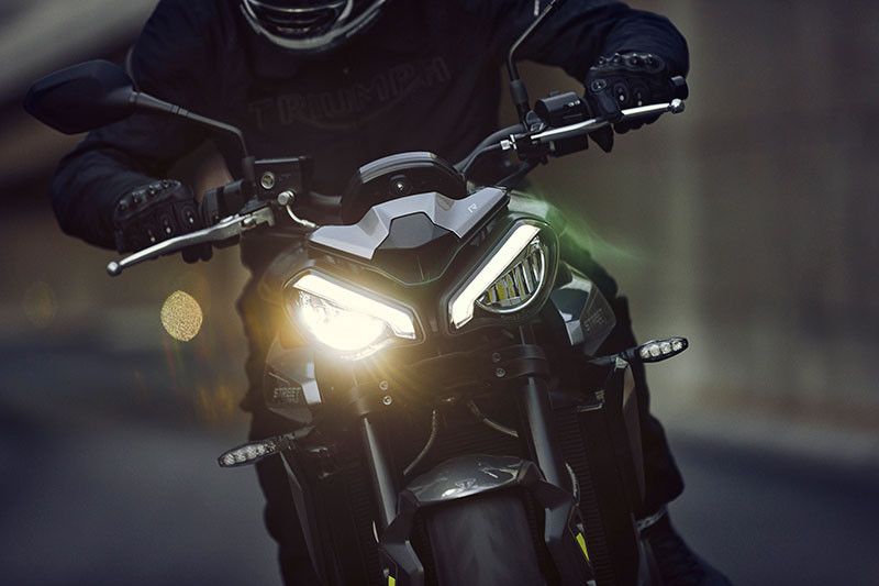 ระบบไฟเป็นแบบ LED ทั้งหมดสำหรับทั้งสามรุ่น โดยในรุ่น RS และ Moto2™ พร้อมไฟหน้า DRL สุดโดเด่นในขณะที่รุ่น Street Triple R โดดเด่นด้วยไฟอันเป็นเอกลักษณ์ รวมถึงการยกเลิกไฟอัตโนมัติที่ได้รับการติดตั้งเป็นอุปกรณ์มาตรฐาน