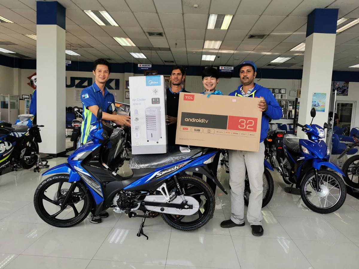 โดยภายในงานมีการ พร้อมบริการตรวจเช็ครถจักรยานยนต์ ซูซูกิ ฟรี…! (ยกเว้นรถ BIG BIKE) , ลดราคาอะไหล่ถึง 20% และเปลี่ยนถ่ายน้ำมันเครื่องในราคาเพียง 60 บาท เท่านั้น ซึ่งมีผู้ใช้รถจักรยานยนต์ ซูซูกิ ให้ความสนใจนำรถเข้ามาใช้บริการอย่างมากมายตั้งแต่เช้า เพียงนำรถมาลงทะเบียนและแจ้งความประสงค์ในการเข้ารับบริการ ทาง ซูซูกิ ก็จะดูแลและตรวจเช็ครถจักรยานยนต์ของท่าน นอกจากทางซูซูกิได้จัดเตรียมอาหาร-เครื่องดื่มไว้รับรองอีกด้วย สำหรับผู้ที่ซื้อรถจักรยานยนต์ใหม่ภายในงานร่วมลุ้นรับรางวัล อาทิ Android ทีวี, พัดลมปรับอากาศ, หมวกกันน๊อค และอื่นๆ อีกมากมาย
