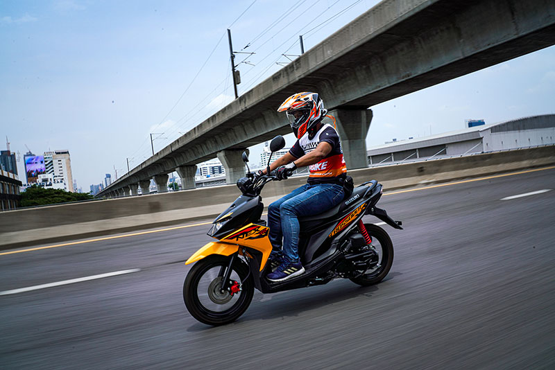 ก่อนอื่น ซูซูกิ เรียกมอเตอร์ไซค์ออโตเมติกรุ่นนี้ว่า Crossover “ขี่ง่าย ลุยได้ทุกทาง” บอดี้เพรียวกระชับ พูดง่ายๆว่า “เล็ก” งานดีไซน์เสริมแง่มุมเหลี่ยมคม บังโคลนหน้า-หลังที่ “สูง” กว่ารถรุ่นอื่นๆชัด “แฮนด์ยก” แบบสปอร์ตทัวร์ริ่งกว้าง 765 มม. ความสูงเบาะ 740 มม.มาพร้อมทรงเบาะที่เรียว แคบ น้ำหนักตัวเพียง 94 กก. เมื่อขึ้นไปนั่งคร่อม สัมผัสแรกรู้เลยว่ารถคันนี้สื่อความเป็น “ครอสโอเวอร์” ชัดเจน เพราะออกแบบมาให้ควบคุมได้อย่าง “เต็มที่” โดยเส้นทางที่เราเลือกทริปนี้เป็นออฟโรดแถบนครนายก อยากบอกว่าการขับขี่ในทางดำมันคือออโตเมติกที่ขี่ง่ายรุ่นหนึ่ง(คนตัวเล็กขี่ได้สบายมากๆ) แต่เมื่อออกจากทางดีลงไปขี่ทางพังๆ รวมทั้งช่วงที่ขี่ “ขึ้นเขา” บนเส้นทางวิบาก Nex Crossover ได้โชว์ให้เห็นว่ามันเป็นรถที่สามารถนำไปใช้งานในเส้นทางหลากหลาย และลุยได้ในอาการที่ “เอาอยู่” เพราะแม้จะเล็ก แต่ก็ทรงตัวดี มิติ บาลานซ์ช่วงรถดีเกินรถออโตฯธรรมดาไปพอสมควร…