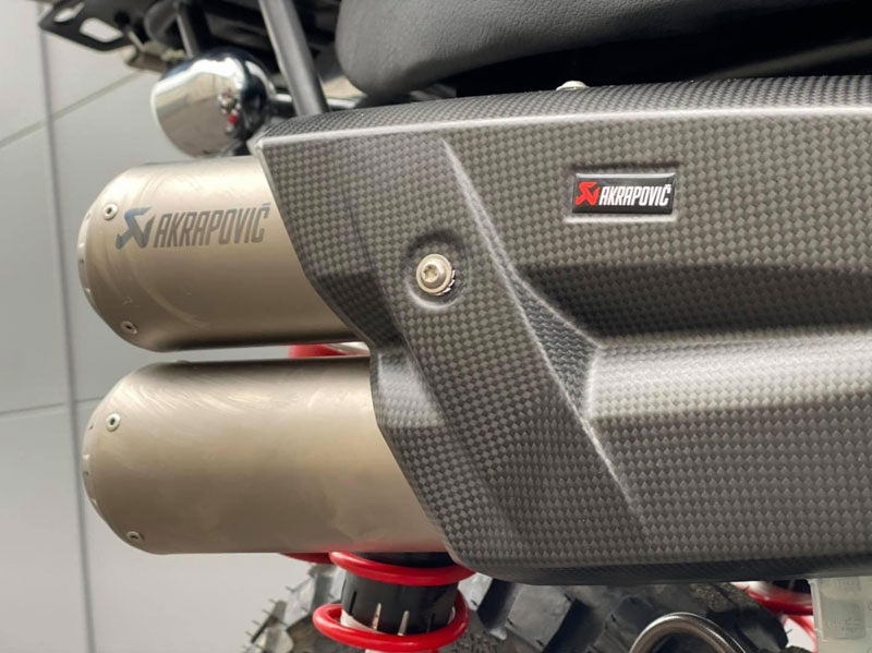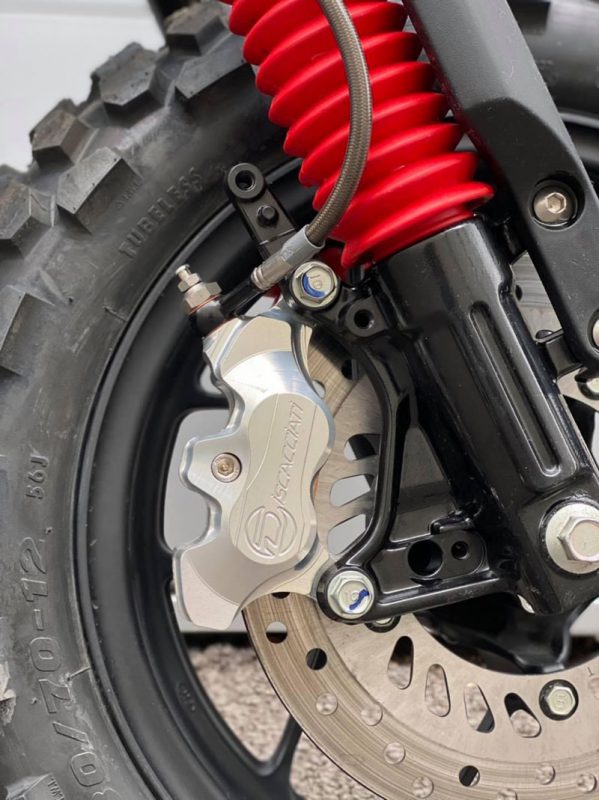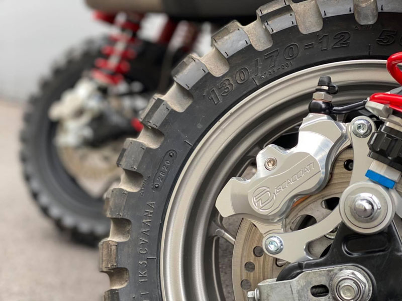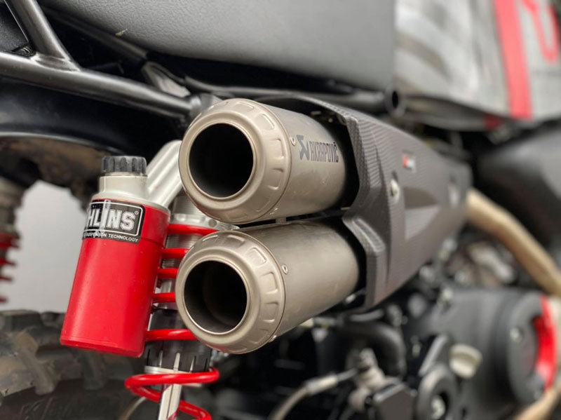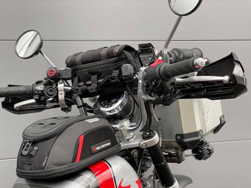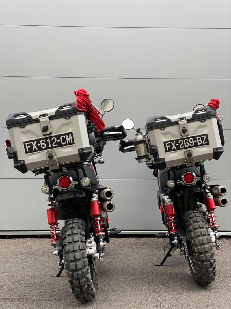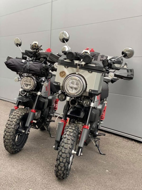 งานตกแต่งมังกี้ทั้งคู่ให้ออกมาในธีมของ SW-MOTECH ไม่ใช่แค่แปะสติ๊กเกอร์ เพราะรื้อออกแยกส่วนทั้งคัน แล้วจับถังน้ำมันไป “ทำสี” ใหม่หมด ท่อใช้ Akrapovic ยกสูงแนวสแครมเบลอร์ ทำเท่ให้ออกปลาย 2 ท่อล้อขอบ 12 อาบสีดำสนิท สลับไปเล่นยางบั้งใหญ่จากKENDA จากนั้นเปลี่ยนคาลิเปอร์ไปใช้ ISCACIATI รวมทั้งขยับช่วงล่างใช้โช้คหลังOhlinsซึ่งมีสีสันแหวกแนวเข้ามา ที่เหลือก็เป็นพวกอุปกรณ์ต่อพ่วงสายเดินทางที่เข้ามาจนเกือบจะรก…แต่รวมๆก็ดู ok น่า!!