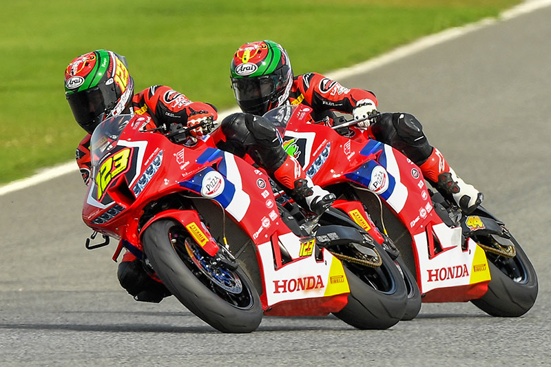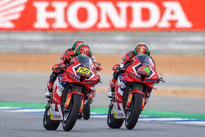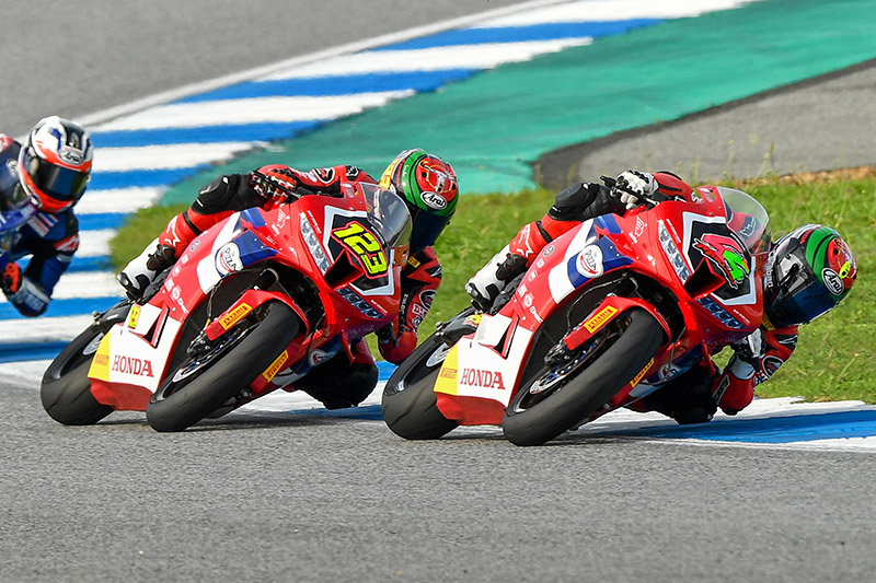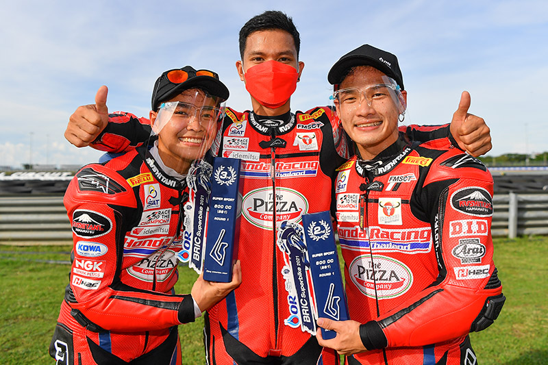ขุนพลนักแข่ง “ฮอนด้า เรซซิ่ง ไทยแลนด์” ประเดิมสนามศึก โออาร์ บีอาร์ไอซี ซูเปอร์ไบค์ แชมเปี้ยนชิพ 2021 ด้วยผลงานยอดเยี่ยม เมื่อ “แชมป์” ภาสวิชญ์ ฐิติวรารักษ์ หมายเลข 123 และ “มุกข์” มุกข์ลดา สารพืช หมายเลข 44 แท็กทีมโชว์ฟอร์มบิดอย่างเร้าใจ ก่อนควงแขนพารถแข่ง Honda CBR600RR รุ่นใหม่ล่าสุด คว้าดับเบิ้ลโพเดียมให้ต้นสังกัดได้สำเร็จ เมื่อวันอาทิตย์ที่ 19 กันยายน 2564