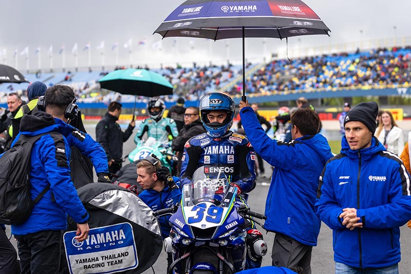 โดย “ตี” อนุภาพ ซามูล ยอดนักบิดไทยเจ้าของรถแข่ง YZF-R6 หมายเลข 51 จาก ยามาฮ่า ไทยแลนด์ เรซซิ่ง ทีม ได้เริ่มเกมจากกริดที่ 21 ส่วนทีมเมทรุ่นน้องอย่าง “ไอเดีย” กฤตภัทร เขื่อนคำ เจ้าของหมายเลข 39 ออกตัวจากกริดที่ 24