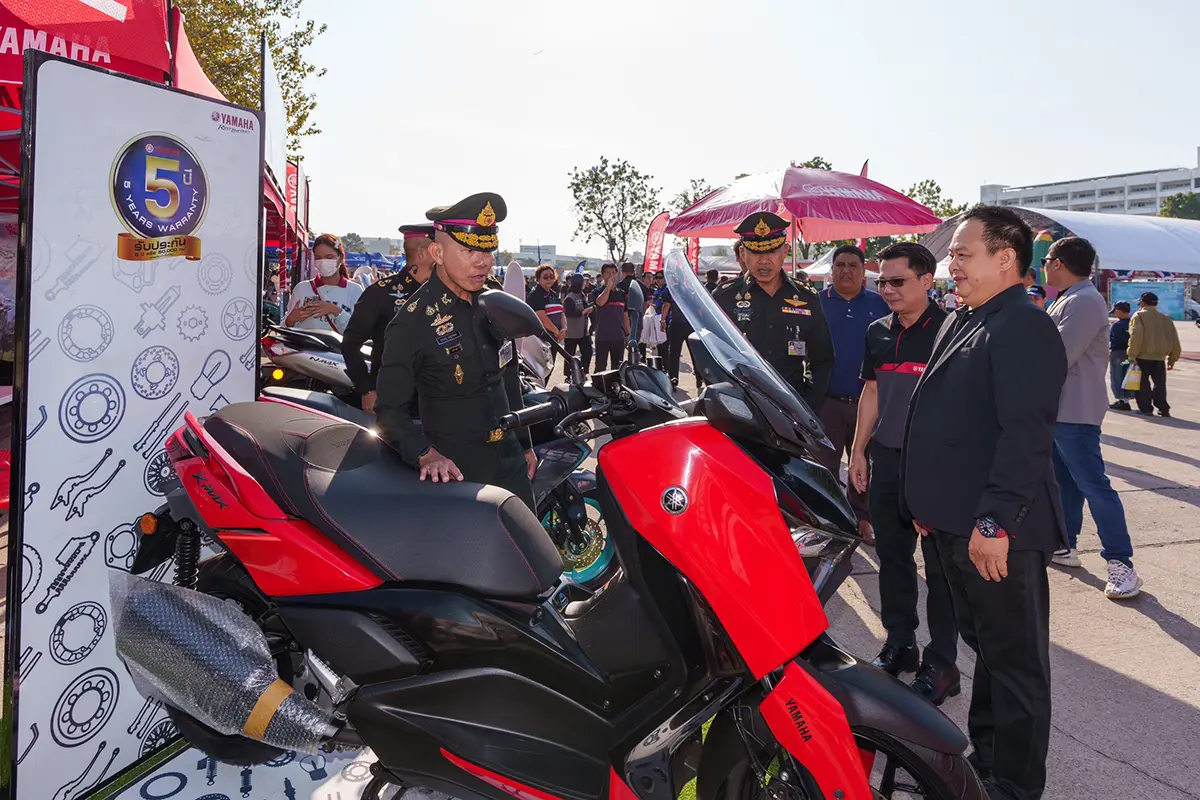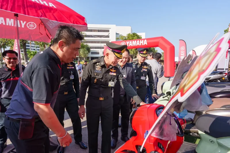 นางสาวบัวทิพย์ จันทร์ดำรงกุล ผู้จัดการใหญ่ด้านการเงิน นายกัมพล พรสูงส่ง รองผู้จัดการใหญ่ด้านการขาย บริการ และอะไหล่ พร้อมคณะผู้บริหารระดับสูง บริษัท ไทยยามาฮ่ามอเตอร์ จำกัด ให้การต้อนรับ และถ่ายภาพร่วมกับ พล.อ.อุกฤษณ์ บุญตานนท์ รองผู้บัญชาการทหารสูงสุด (คนที่….) ในการเยี่ยมชมบูธกิจกรรมยามาฮ่า ในงานวันเด็กแห่งชาติ ประจำปี 2568 ณ กองบัญชาการกองทัพไทย โดยยามาฮ่าได้ให้การสนับสนุนการจัดกิจกรรมวันเด็กร่วมกับกองบัญชาการกองทัพไทยมาอย่างต่อเนื่องมากกว่า 10 ปี