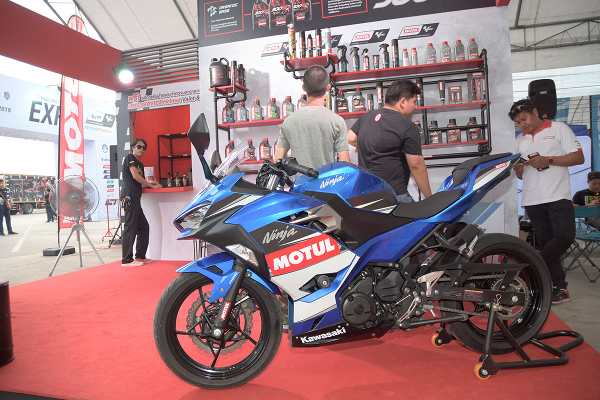 นอกจากนี้มีบูธอุปกรณ์ตกแต่งชั้นนำอีกรายของเมืองไทย Moritech ที่เน้นนำของแต่ง “ทั้งคัน” มาให้แฟนๆได้ซื้อหากันเพียบ แล้วมีรถแต่งเฟี้ยวๆ มาจอดให้ชมเป็นแนวทางในการ “เล่น” พร้อมสาวสวยสุดเซ็กซี่ 3 นาง มาคอยให้ข้อมูลตลอดงาน… อีกหนึ่งบูธที่โดดเด่นมาแต่ไกลคือ เจ้าของแบรนด์โช้คอัพไทยระดับโลก YSS ที่ได้รับความสนใจมากมาย… เช่นเดียวกับบูธยางรถจักรยานยนต์ IRC ที่นำยางรุ่นดังมาจัดแสดงพร้อมพริตตี้สาวสุดเซ็กซี่มาแจกสติ๊กเกอร์เท่ๆ …ปิดท้ายด้วยบูธของน้ำมันเครื่องอันดับหนึ่งของญี่ปุ่น ENEOS ที่นำผลิตภัณฑ์น้ำมันเครื่องที่วางจำหน่ายในประเทศไทยมาจัดแสดงครบทุกซีรีส์ …และทั้งหมดนี้คือไฮไลต์ของบรรดาแบรนด์ดังที่เข้าร่วมเป็นส่วนหนึ่งของความยิ่งใหญ่ใน Thai GP 2019