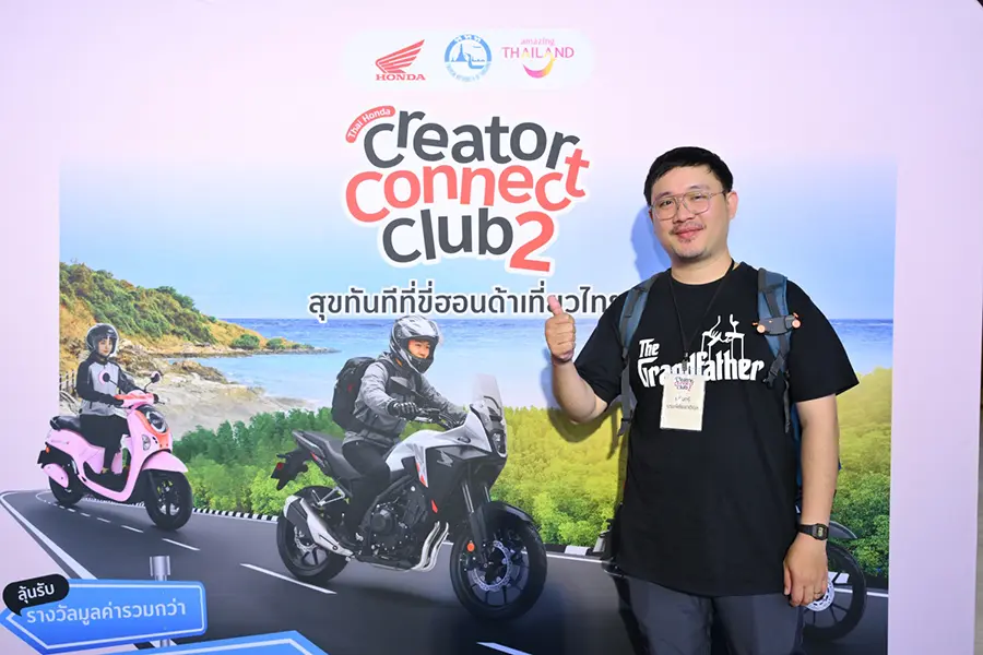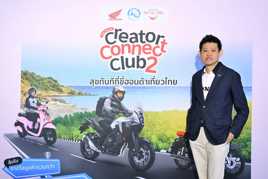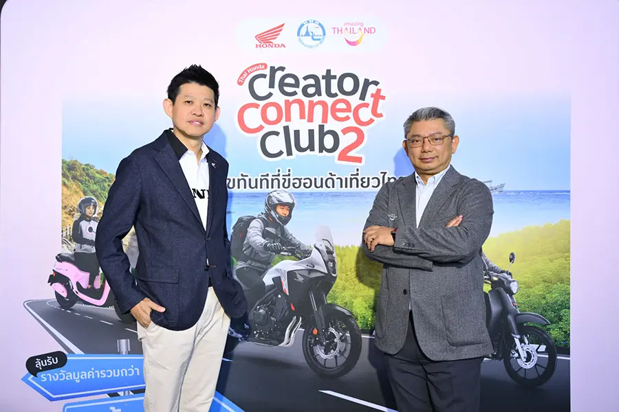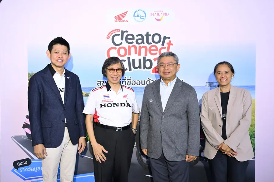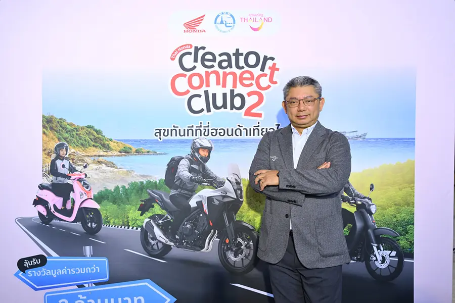 ไทยฮอนด้า ร่วมกับ การท่องเที่ยวแห่งประเทศไทย (ททท.) จัดงานแถลงข่าวแคมเปญร่วม “Thai Honda Creator Connect Club ปีที่ 2: สุขทันทีที่ขี่ฮอนด้าเที่ยวไทย” เปิดพื้นที่ให้คอนเทนต์ครีเอเตอร์จากทั่วประเทศได้ออกเดินทางถ่ายทอดเสน่ห์การท่องเที่ยวไทยผ่านการขับขี่รถจักรยานยนต์ฮอนด้า ยกระดับทักษะการสร้างคอนเทนต์อย่างมืออาชีพ พร้อมกันนี้ยังได้เปิดตัวครีเอเตอร์ผู้เข้ารอบ 20 คนสุดท้าย จากการค้นหาและคัดสรรสุดเข้มข้นจาก 400 คลิปที่ส่งเข้าประกวดโดยครีเอเตอร์ทั่วประเทศ เพื่อเข้าร่วม Thai Honda Creator Connect Camp สุดเอ็กซ์คลูซีฟ 3 วัน 2 คืน ระหว่างวันที่ 29 – 31 มกราคม 2569 ที่จังหวัดระยอง ซึ่งผู้เข้าร่วมจะได้ร่วมเวิร์กชอปใกล้ชิดกับครีเอเตอร์มืออาชีพ ฝึกฝนการสร้างสรรค์คอนเทนต์ผ่านประสบการณ์การเดินทางจริง และสัมผัสการท่องเที่ยวไทยในมุมมองใหม่ด้วยรถจักรยานยนต์ฮอนด้า ก่อนเข้าสู่กิจกรรมการแข่งขันสร้างสรรค์คอนเทนต์ เพื่อชิงรางวัลรวมมูลค่าทั้งแคมเปญกว่า 2,000,000 บาท