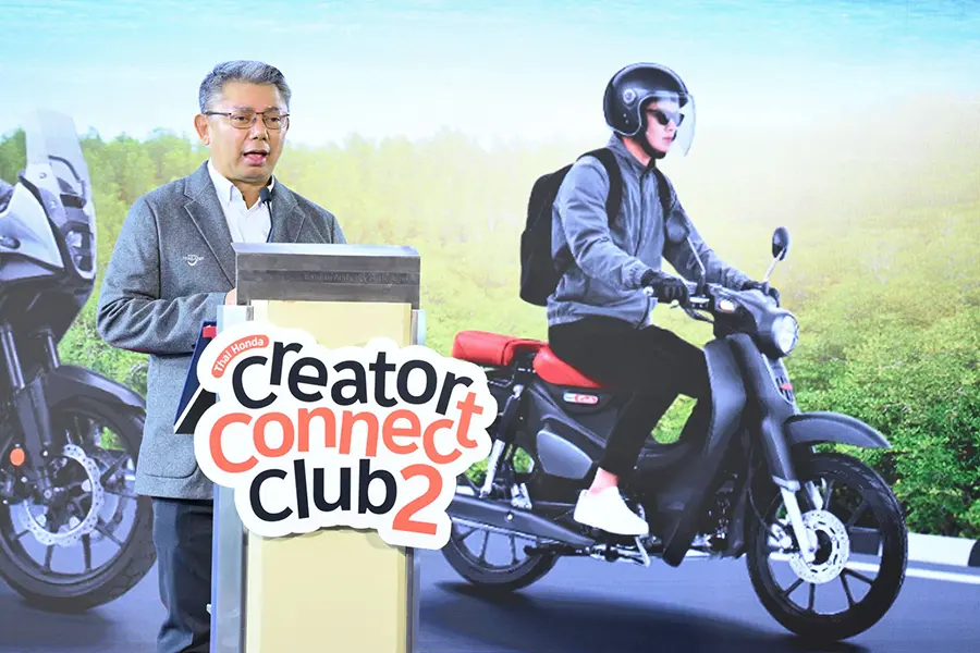 นายนคร วิมลจิตรสอาด ผู้จัดการทั่วไป สายงานการสื่อสารการตลาด บริษัท ไทยฮอนด้า จำกัด กล่าวถึงกิจกรรมนี้ว่า “โครงการ Thai Honda Creator Connect Club เกิดขึ้นจากความมุ่งมั่นของไทยฮอนด้าที่ต้องการผลักดันศักยภาพของคอนเทนต์ครีเอเตอร์ไทยอย่างต่อเนื่อง สำหรับปีที่ 2 นี้ ฮอนด้ามีความยินดีอย่างยิ่งที่ได้ยกระดับโครงการขึ้นอีกขั้น ผ่านความร่วมมือกับการท่องเที่ยวแห่งประเทศไทย (ททท.) เพื่อร่วมผลักดันแคมเปญ ‘สุขทันทีที่เที่ยวไทย’ โดยตั้งใจเปลี่ยนทุกการเดินทางด้วยรถจักรยานยนต์ฮอนด้าให้เป็นเรื่องราวที่สร้างแรงบันดาลใจ ถ่ายทอดเสน่ห์ของเมืองไทยผ่านมุมมองของคนท้องถิ่น พร้อมเชิญชวนครีเอเตอร์ถ่ายทอดความสุขของการท่องเที่ยวในประเทศไทยผ่านแพลตฟอร์มโซเชียลมีเดียต่างๆ นอกเหนือจากโอกาสในการพัฒนาทักษะระดับมืออาชีพจากกูรูแถวหน้าแล้ว โครงการนี้ยังมีบทบาทสำคัญในการส่งต่อความสุขให้ผู้คน กระตุ้นเศรษฐกิจการท่องเที่ยวในประเทศ และตอกย้ำว่าการท่องเที่ยวเมืองไทยสนุกขึ้นได้อย่างแน่นอนเมื่อเดินทางด้วยรถจักรยานยนต์ฮอนด้า”