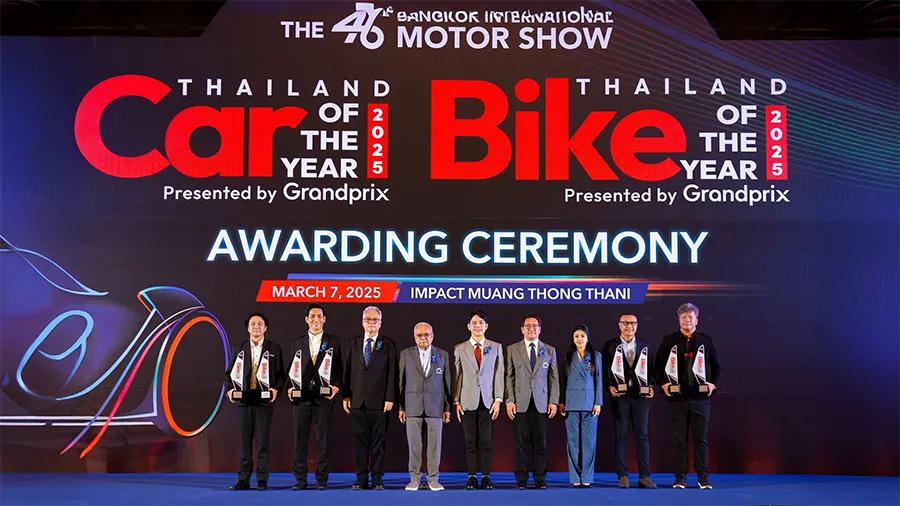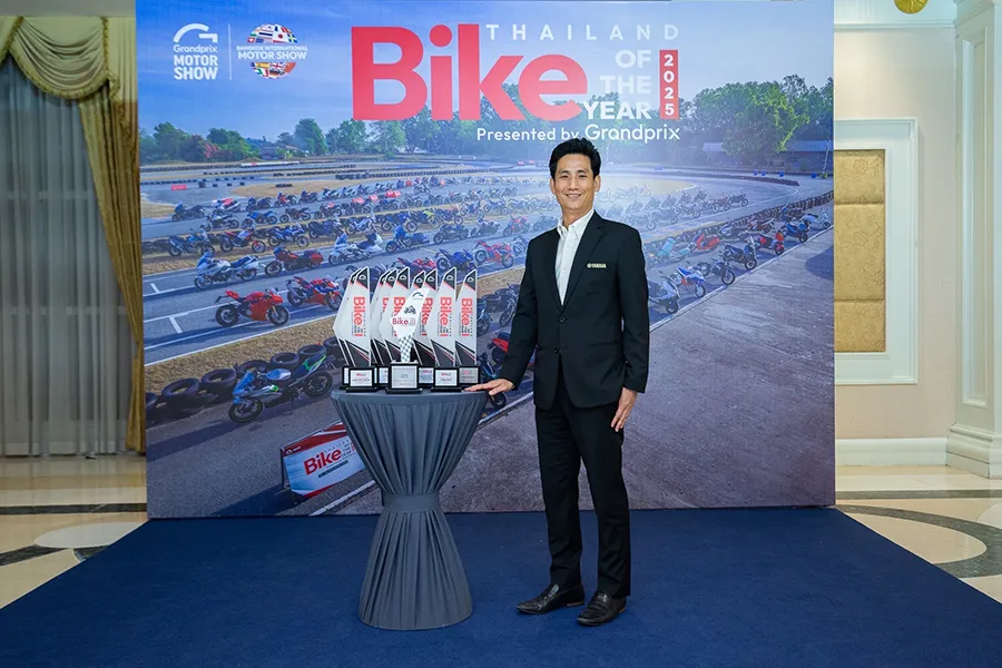 นายอุกฤษณ์ ภาควิวรรธ รองผู้จัดการใหญ่ด้านวางแผนการค้า และการตลาด และนายจิรภัทร สายเพชร ผู้จัดการทั่วไปส่วนสื่อสารการตลาดและส่งเสริมการตลาด นายพนา แดนแก้วมูล ผู้จัดการกลุ่มงานขาย และการตลาดรถบิ๊กไบค์ บริษัท ไทยยามาฮ่ามอเตอร์ จำกัด ขึ้นรับรางวัล และถ่ายภาพร่วมกับ นายพงศ์พล ยอดเมืองเจริญ เลขานุการรัฐมนตรีว่าการกระทรวงอุตสาหกรรม ประธานในพิธี ดร.ปราจิน เอี่ยมลำเนา ประธานจัดงานมอเตอร์โชว์ นายจาตุรนต์ โกมลมิศร์ รองประธานจัดงานมอเตอร์โชว์ / ประธานเจ้าหน้าที่ปฎิบัติการ สายกิจกรรมพิเศษ นายอโณทัย เอี่ยมลำเนา กรรมการบริหาร ประธานการจัดงาน Car & Bike of the Year นายพีระพงศ์ เอี่ยมลำเนา รองประธานการจัดงาน Car & Bike of the Year 2025 โดย บริษัท กรังด์ปรีซ์ อินเตอร์เนชั่นแนล จำกัด (มหาชน) ในการประกาศรางวัล Thailand Car & Bike of The Year 2025