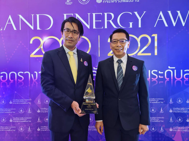 มร. ชินโงะ โอวากิ ผู้จัดการใหญ่ด้านการเงิน บริษัท ไทยยามาฮ่ามอเตอร์ จำกัด เป็นตัวแทนบริษัทฯ ขึ้นรับรางวัล Thailand Energy Award (TEA) ประจำปี 2564 ด้านการอนุรักษ์พลังงาน ประเภทโรงงานควบคุม ประจำปี 2564 จากนายสุพัฒนพงษ์ พันธ์มีเชาว์ รองนายกรัฐมนตรี และรัฐมนตรีว่าการกระทรวงพลังงาน เพื่อเป็นการประกาศเกียรติคุณ และเชิดชูเกียรติในการเป็นแบบอย่างที่ดี ที่สามารถปฏิบัติตามแนวทางการประหยัดพลังงานอย่างสร้างสรรค์ รวมถึงมีความมุ่งมั่นในการพัฒนาประสิทธิภาพการใช้พลังงานให้เกิดประโยชน์สูงสุดในองค์กร