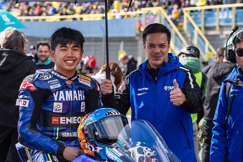 “ตี” อนุภาพ ซามูล นักบิดไทยเจ้าของหมายเลข 51 จาก ยามาฮ่า ไทยแลนด์ เรซซิ่งทีม ได้เริ่มเกมจากกริดที่ 24 ส่วนทีมเมทรุ่นน้องอย่าง “ไอเดีย” กฤตภัทร เขื่อนคำ เจ้าของหมายเลข 39 ออกตัวจากกริดที่ 27