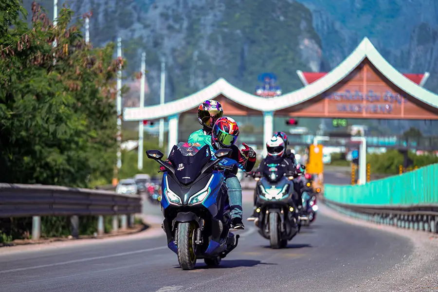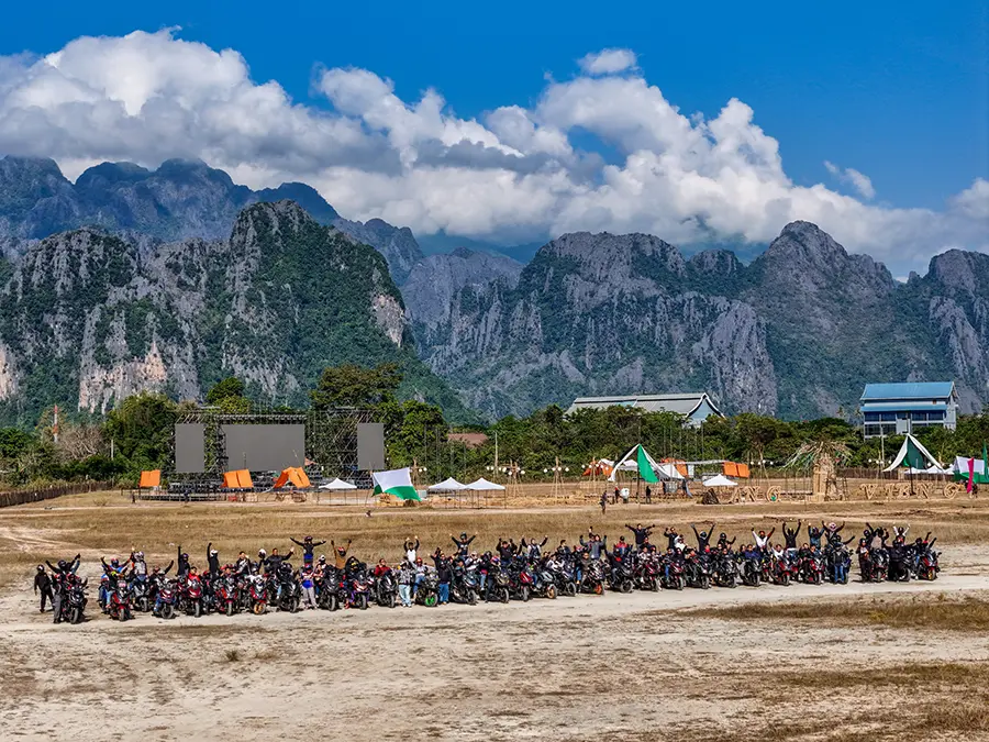 กิจกรรมครั้งนี้ เริ่มต้นที่การเดินทางเข้าสู่นครหลวงเวียงจันทน์ สาธารณรัฐประชาธิปไตยประชาชนลาวเพื่อปักหมุดเช็กอินแลนด์มาร์กสำคัญอย่าง ประตูชัย และพระธาตุหลวง ก่อนเดินทางสู่เมืองเฟือง ผ่านเส้นทางธรรมชาติ และบรรยากาศริมน้ำ ทั้งนี้ไฮไลต์สำคัญในวันที่สองคือการมุ่งหน้าสู่เมืองวังเวียง และขับขี่ขึ้นจุดชมวิว ณ ผาหนามไซ โดยเป็นการเปิดโอกาสให้ไบค์เกอร์ได้ทดสอบสมรรถนะรถจักรยานยนต์คันโปรดที่สามารถพิชิตทุกสภาพเส้นทางอย่างมั่นใจ