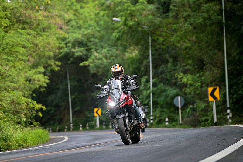 อย่างไรก็ตามช่วงล่างของ Triumph Tiger Sport660 ไปได้สวย(มาก)กับเส้นทางโค้งที่เจ้าภาพเขาพาทีมทดสอบไปเลื้อยกันเล่น หนึบในทางโค้งไฮสปีด และเลี้ยว “คม” ในโค้ง S ละแวกเจ็ดสาวน้อย-แก่งคอย
