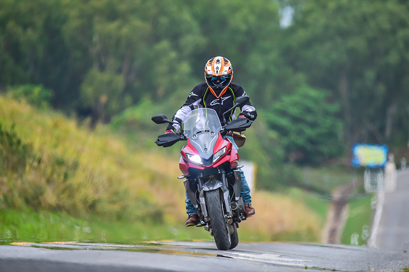 น้ำหนัก 206 กก. มาพร้อมกับ “ช่วงรถ” ที่มีความเป็นยุโรปซ่อนอยู่ เบาะสูง 835 มม. แฮนด์กว้าง 834 มม. ถ้ามือใหม่อาจจะต้องปรับตัวสักหน่อย แต่มือเก๋า ขึ้นไปขี่แล้วมิติแบบนี้มันโยกง่าย-ย้ายคล่อง …ผมขี่ถามว่ามีบัลเลต์มั้ย..มีครับ แต่ก็ไม่ได้เป็นปัญหาอะไร เพราะรถบาล๊านซ์โอเค ทรงตัวดี