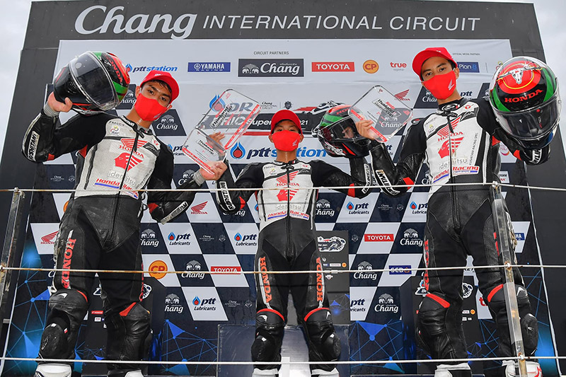 การแข่งขันรถจักรยานยนต์ทางเรียบระดับเวิลด์คลาสของไทย โดยใช้รถแข่ง Honda NSF250 สเป็กเดียวกับการแข่งขัน โมโตทรี ชิงแชมป์โลก รายการ ฮอนด้า ไทยแลนด์ ทาเลนต์ คัพ 2021 ภายใต้โครงการ “ฮอนด้า เรซ ทู เดอะ ดรีม” เดินทางเข้าสู่เกมชิงชัยสนาม 3 เมื่อวันที่ 15-17 ตุลาคม ที่ผ่านมา จัดขึ้นที่สนามช้าง อินเตอร์เนชั่นแนล เซอร์กิต จ.บุรีรัมย์ ซึ่งมีพายุฝนตกกระหน่ำตลอดสัปดาห์