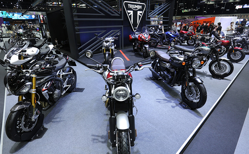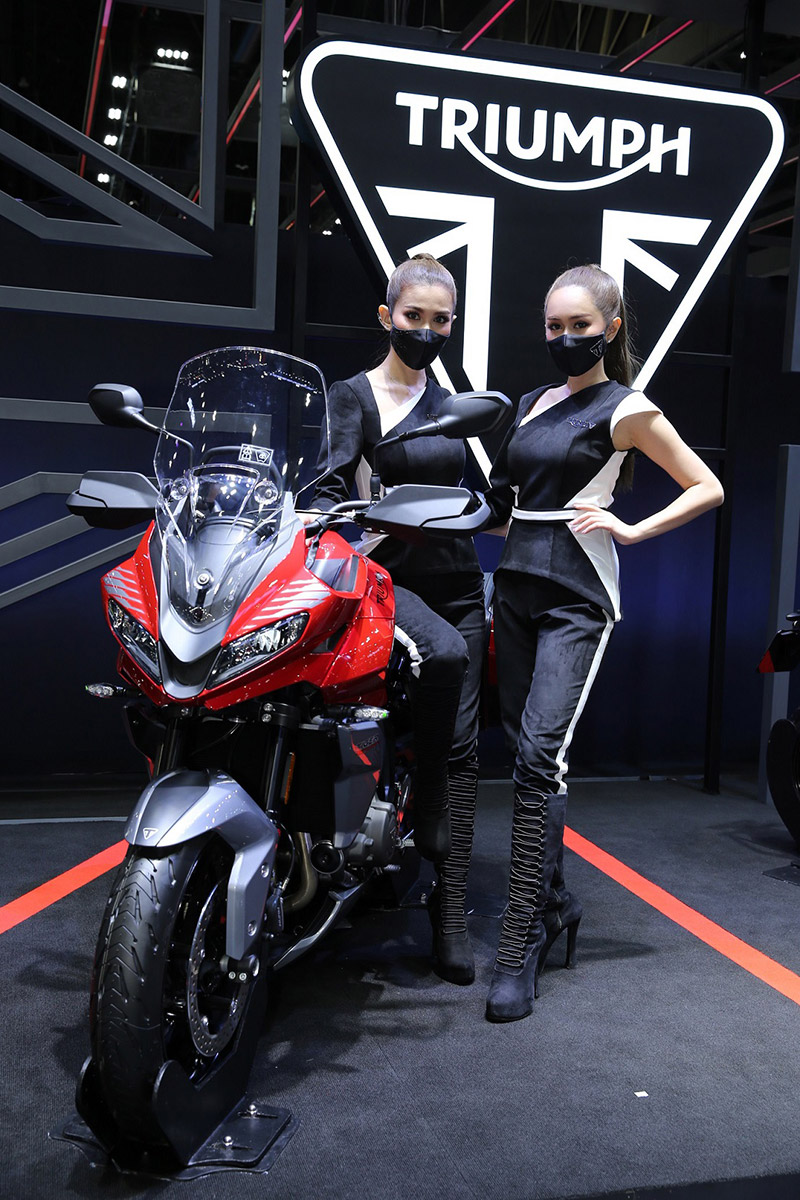 นางสาวจิราพร สำเร็จกิจเจริญ ผู้จัดการฝ่ายการตลาด บริษัท ไทรอัมพ์ มอเตอร์ไซเคิลส์ (ไทยแลนด์) จำกัด กล่าวว่า สำหรับงานมอเตอร์ เอ็กซ์โป 2021 ไทรอัมพ์จัดเซอร์ไพรส์สุดยิ่งใหญ่ด้วยการขนกองทัพรถจักรยานยนต์รุ่นใหม่ปี 2021 มาให้สัมผัสอย่างใกล้ชิดและพร้อมให้จับจองเป็นเจ้าของกันครั้งแรกภายในงานถึง 12 รุ่น