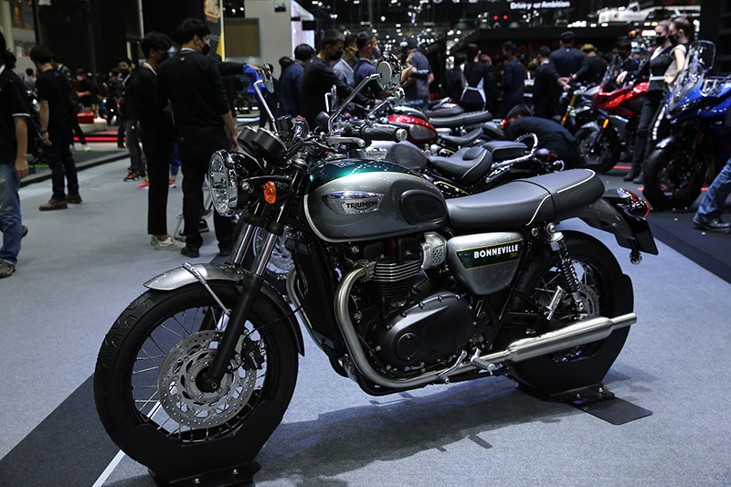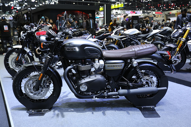 1.บอนเนวิลล์ ที100 โกลด์ไลน์ อิดิชัน: เครื่องยนต์สูบคู่แรงบิดสูง 900ซีซี กำลังสูงสุด 65 แรงม้า ที่ 7,400 รอบต่อนาที และมีแรงบิดสูงสุด 80 นิวตันเมตร ที่ 3,750 รอบต่อนาที มาในสี Silver Ice/ Competition Green สนนราคา 482,000 บาท