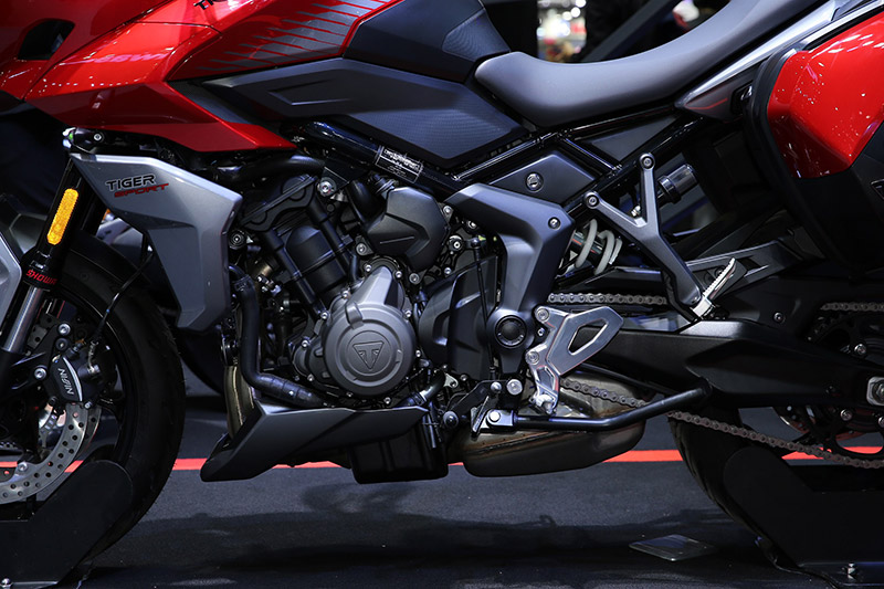 ประเดิมด้วยตระกูลแอดเวนเจอร์อย่างรุ่น ไทเกอร์ สปอร์ต 660 (Tiger Sport 660) นำเสนอสุดยอดขุมพลังเครื่องยนต์สามสูบขนาด 660 ซีซี และเป็นครั้งแรกในรถกลุ่มนี้ที่ให้แรงบิดอันทรงพลังจากรอบต่ำไปจนถึงรอบสูงอย่างสมบูรณ์แบบ ผสมผสานกับสมรรถนะช่วงกลางที่แข็งแกร่ง ถังน้ำมันความจุ 17 ลิตรที่ออกแบบมาให้มีขนาดกำลังดีเพื่อการเดินทางได้ต่อเนื่องยิ่ง