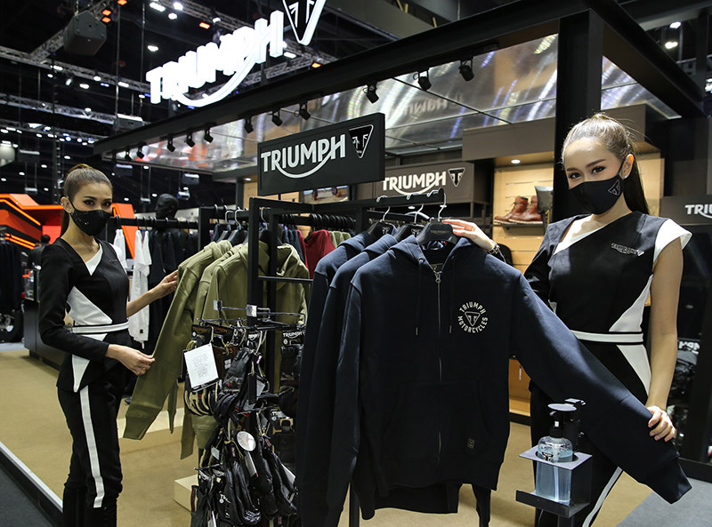 สำหรับคอลเลกชั่นเสื้อผ้าลิขสิทธิ์แท้ของ Triumph ที่งาน “มหกรรมยานยนต์ ครั้งที่ 38” หรือ Motor Expo 2021 ณ บูธไทรอัมพ์ G13 อาคารชาเลนเจอร์ ฮอลล์ 3 อิมแพค เมืองทองธานี ระหว่างวันที่ 1 – 12 ธันวาคม 2564