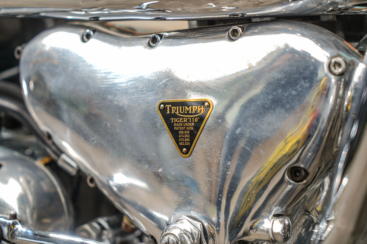 ชุดเครื่องยนต์ 2 สูบเสื้อเหล็กปีเก่าเป็น “Triumph” รหัสเครื่องยนต์ “T110” ปี 1954 ให้ความสุขุมนุ่มลึก มีกับของแต่งบนเครื่องยนต์นิดหน่อย ท่อคู่งานสร้างชุบโครเมี่ยมเงาแว๊บ ยาวพาดข้างเด่นเป็นสง่า …. ”เบาะสปริง” สุดคลาสสิค ในส่วน พักเท้า, Kickstart, Sissybar, ไฟท้าย, ขาตั้ง เป็นงานสร้างขึ้นรูปใหม่โดยคนไทยทั้งสิ้น แถมของแต่งจุกจิกอีกมากมายให้พวกเราได้น้ำลายหยดกันเป็นแถว !! จาก Detail ทั้งหมดที่กล่าวมาก็ทำให้คันนี้กลายเป็นรถ Chopper ที่ดูลงตัว และเรียบง่าย แต่คงความดุดันไว้ได้เป็นอย่างดี !