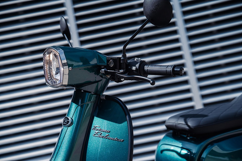 Turismo Electronica เป็นรถสกู๊ตเตอร์ที่ไฟฟ้าที่ขับเคลื่อนด้วย DC Brushless Permanent Magnet Synchronous Motor ให้กำลังมอเตอร์ 3,000 วัตต์ ทำความเร็วสูงสุด 90 กิโลเมตรต่อชั่วโมง ความจุแบตเตอรี 72 โวลต์ 40 แอมแปร์ต่อชั่วโมง ให้การขับระยะทางไกลถึง 101 กิโลเมตร ในระยะเวลาชาร์จเต็มเพียง 3 ชั่วโมง พร้อมให้เหล่าไรเดอร์ค้นพบประสบการณ์การเดินทางที่เร้าใจและตอบโจทย์ทุกไลฟ์สไตล์ด้วยโหมดการขับขี่ 3 รูปแบบ ทั้ง Economy Sport และ Normal พร้อมด้วยเกียร์ถอยหลัง มีโช้คหน้าและหลังแบบไฮดรอลิกปรับพรีโหลดได้ และระบบเบรก CBS เพื่อประสบการณ์ขับขี่ที่นุ่มนวล คล่องตัว และปลอดภัย นอกจากนี้ยังมาพร้อมหน้าจอแสดงผล TFT ขนาด 5ตารางนิ้ว รองรับการเชื่อมต่อและสั่งการผ่านแอปพลิเคชันเพื่ออำนวยความสะดวก ด้านการดีไซน์ได้รับการออกแบบเพื่อรองรับสรีระของนักขับขี่ทุกเพศทุกวัย ด้วยน้ำหนักรถ 137 กิโลกรัม และความสูงเบาะที่นั่ง 800 มิลลิเมตร ขณะที่รูปลักษณ์ยังคงรักษาเอกลักษณ์รถวินเทจยุค 60 คลาสสิกเหนือกาลเวลา ด้วยเส้นสายโค้งมน โคมไฟหน้าทรงกลมและเบาะนั่งแบบสโลป สะกดทุกสายตาบนท้องถนน มาพร้อม 3 ตัวเลือกสี ทั้ง Emerald Green สีเขียวมรกตสดใส Coal Pearl สีเทาถ่านประกายมุก และ Panther Black สีดำมันขลับดุจเสือดำ