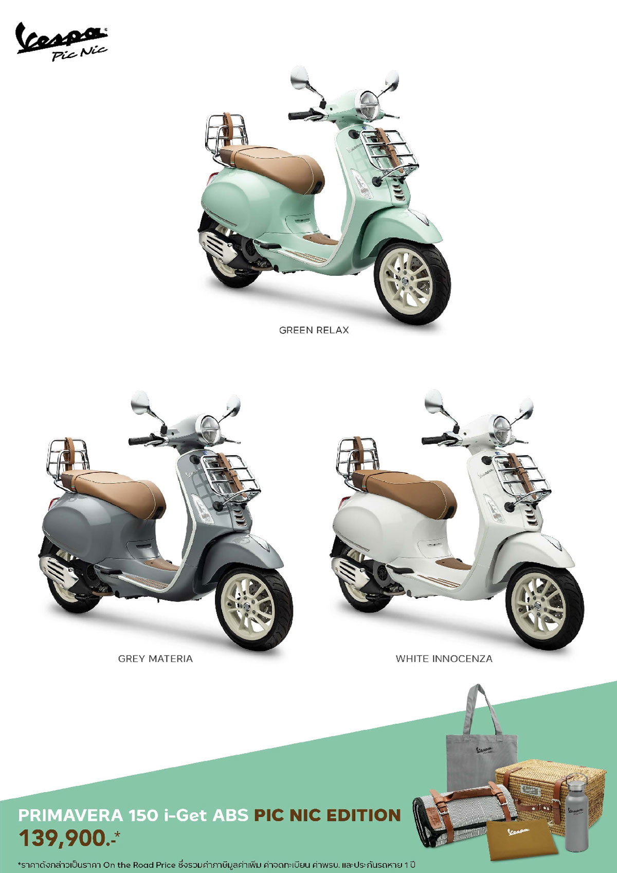 ‘VESPA PRIMAVERA 150 i-Get ABS PIC NIC EDITION’ ราคา 139,900 บาท มาพร้อมความเพลิดเพลินจากชุดของ