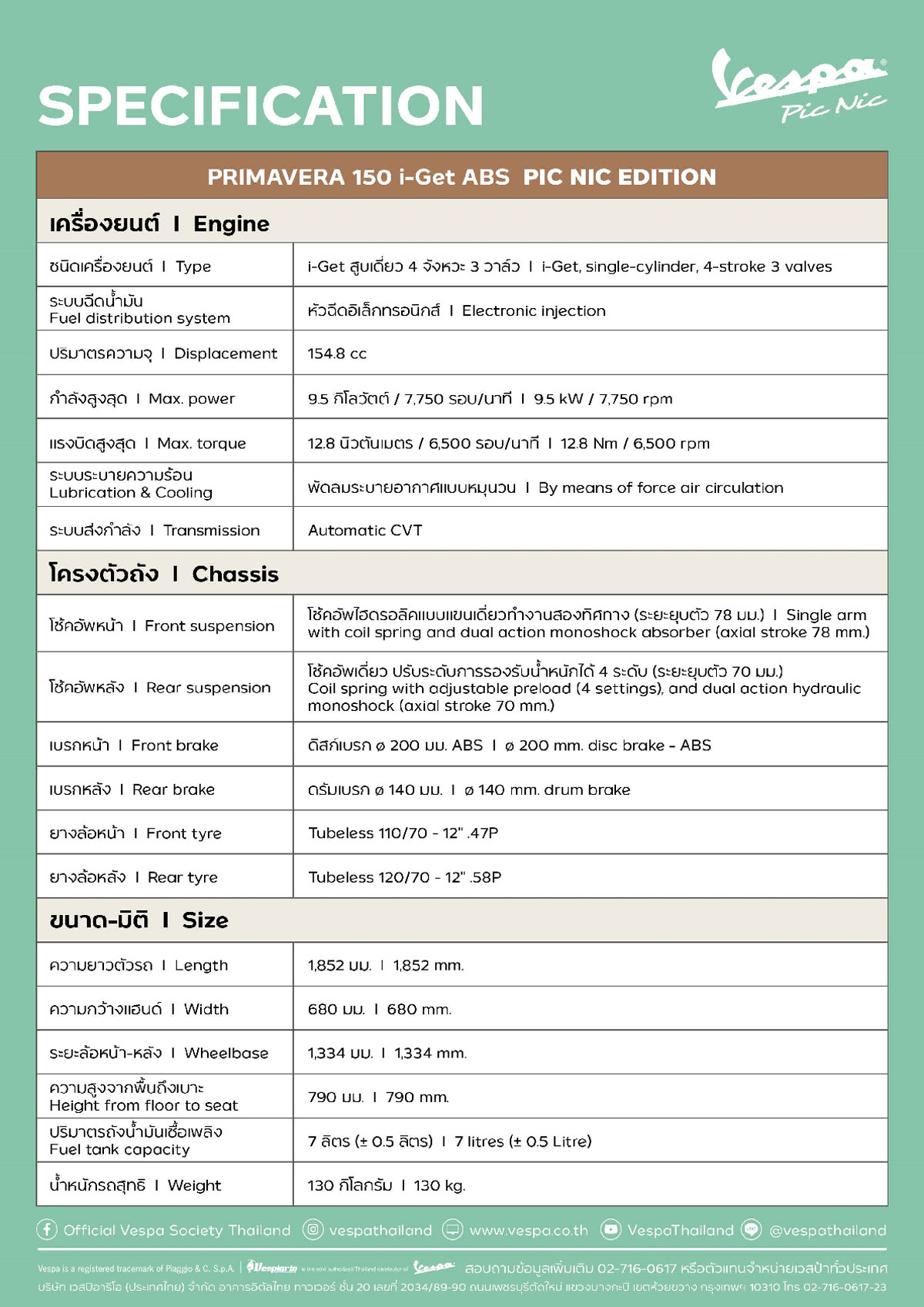 ‘VESPA PRIMAVERA 150 i-Get ABS PIC NIC EDITION – เวสป้า พรีมาเวร่า 150 ไอ-เก็ต เอบีเอส ปิกนิก เอดิชั่น’ ไลฟ์สไตล์ไอคอนนิกที่รวมแรงขับเคลื่อนเพื่อแสวงหาอิสรภาพ และ การทลายกรอบพื้นที่สู่ความอิสระในการใช้ชีวิต ชวนออกเดินทางเติมเต็มแรงบันดาลใจให้ทุกโมเมนต์ มีแต่คำว่าแฮปปี้กับสถานที่ใหม่ๆ โลกใหม่ๆ นอกจากคอนเซ็ปต์สุดพิเศษแล้ว VESPA PRIMAVERA 150 i-Get ABS PIC NIC EDITION ยังนำเสนอการออกแบบโดยการหยิบเอาบรรยากาศของโมเดิร์นปิกนิกที่กลมกลืนกับธรรมชาติ
