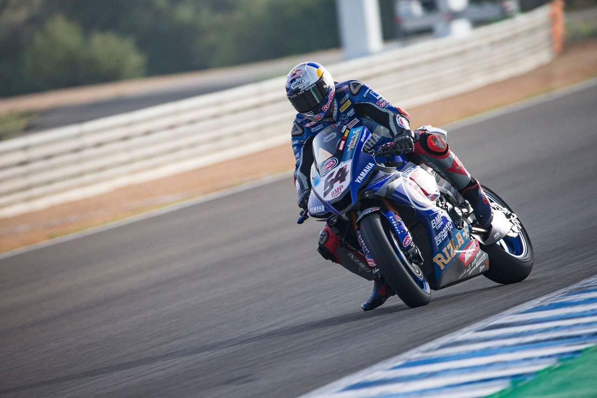 และเป็นทางด้าน ราซกัตลิโอกลู ที่ออกสตาร์ทได้อย่างยอดเยี่ยม ไต่ขึ้นไปรั้งอันดับ 2 ตั้งแต่รอบแรกของการแข่งขัน และบิดเกาะอยู่ในกลุ่มหัวขบวนตลอดทั้งเกม ขับเคี่ยวแย่งแชมป์กับคู่แข่งได้อย่างสุดมันส์ ก่อนจะบิด ยามาฮ่า YZF-R1 รับธงตาหมากรุกในอันดับ 3 ผงาดขึ้นโพเดี้ยมในเรซแรกที่ เฆเรซ ส่วน ฟาน เดอร์ มาร์ค #60 เพื่อนร่วมสังกัดบิดไม่จบการแข่งขัน