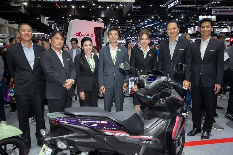 นายพงศธร เอื้อมงคลชัย ประธานกรรมการบริหาร มร.ฮิเดฮิโกะ ทาคากิ รองประธานกรรมการบริหาร นายภาณุพล กิตติคำรณ ผู้จัดการใหญ่ด้านการค้า นายกัมพล พรสูงส่ง รองผู้จัดการใหญ่ด้านการขาย บริการ และอะไหล่ นายอุกฤษณ์ ภาควิวรรธ รองผู้จัดการใหญ่ด้านการค้า และการตลาด บริษัท ไทยยามาฮ่ามอเตอร์ จำกัด ถ่ายภาพร่วมกับนายวุฒิชัย ไทยวุฒิพงศ์ กรรมการ บริษัท สื่อสากล นางสาววราทิพย์ คำนึงคุณ กรรมการผู้จัดการ และนางสาวอัญมณี เศรษฐนันท์ กรรมการ บริษัท มอเตอร์ไซเคิล จำกัด ถ่ายภาพร่วมกันในพิธีเปิดบูธ YAMAHA Revs With Passion – เร่งชีวิตให้มีความหมายไปกับยามาฮ่า
