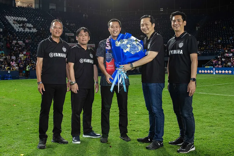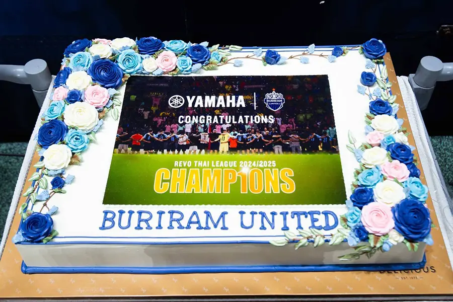 นายพงศธร เอื้อมงคลชัย ประธานกรรมการบริหาร, มร.ทาคากิ ฮิเดฮิโกะ รองประธานกรรมการบริหาร, นายภาณุพล กิตติคำรณ ผู้จัดการใหญ่ด้านการค้า และนายอุกฤษณ์ ภาควิวรรธ รองผู้จัดการใหญ่ด้านวางแผนการค้า และการตลาด บริษัท ไทยยามาฮ่ามอเตอร์ จำกัด ร่วมแสดงความยินดี ด้วยการมอบช่อดอกไม้ และเค้กเพื่อฉลองความสำเร็จแก่นายเนวิน ชิดชอบ ประธานสโมสรบุรีรัมย์ ยูไนเต็ด ในการคว้าแชมป์ฟุตบอลลีกสูงสุดของประเทศไทย รายการ Revo Thai League ฤดูกาล 2024–2025