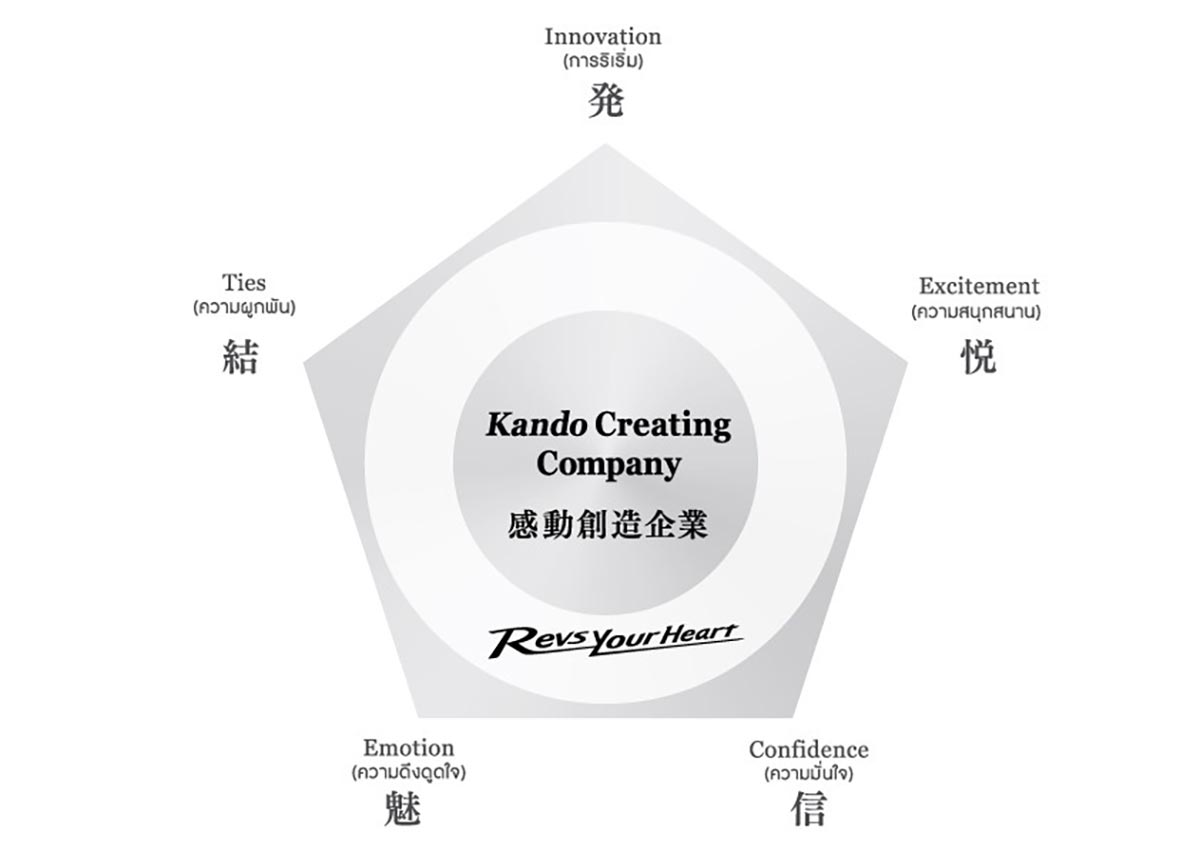 สำหรับ บริษัท ยามาฮ่ามอเตอร์ จำกัด ประเทศญี่ปุ่น มีทิศทางและนโยบายที่ชัดเจนในการเสริมสร้างความแข็งแกร่งให้กับแบรนด์ ด้วยวิถีอันเป็นเอกลักษณ์ยามาฮ่า 5 ประการ พร้อมกันทั่วโลก ได้แก่ Innovation (ความริเริ่ม), Excitement (ความสนุกสนาน), Confidence (ความมั่นใจ), Emotion (ความดึงดูด) และ Ties (ความผูกพัน) เพื่อบ่งบอกถึงเอกลักษณ์ของยามาฮ่าที่ไม่เหมือนใคร ซึ่งเอกลักษณ์ที่ชัดเจนนี้เป็นแนวทางปฏิบัติที่พนักงานทุกคนยึดถือปฏิบัติและถ่ายทอดสู่การสร้างสรรค์สินค้า บริการและทุกจุดสัมผัสของยามาฮ่า เพื่อสร้างความพึงพอใจสูงสุดแก่ลูกค้าและเพื่อความภักดีต่อแบรนด์ในระยะยาว