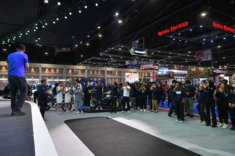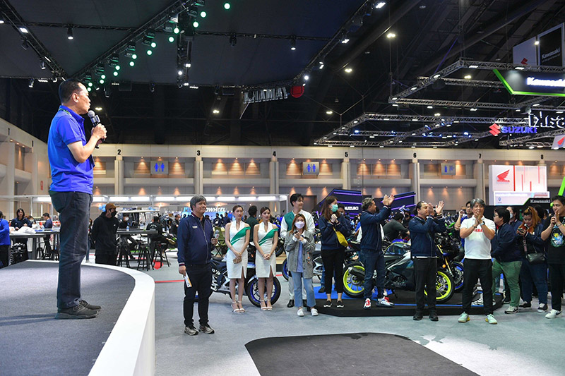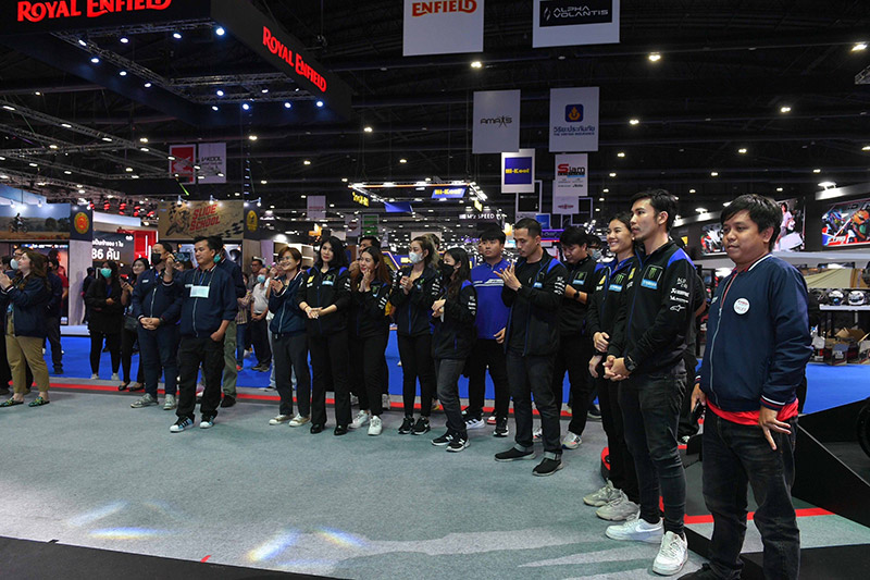 นายภาณุพล กิตติคำรณ รองผู้จัดการใหญ่ด้านการขายและการตลาด พร้อมพนักงานบริษัท ไทยยามาฮ่ามอเตอร์ จำกัด ถ่ายภาพร่วมกับร้านผู้จำหน่ายรถจักรยานยนต์เขตกรุงเทพฯ และปริมณฑล พร้อมฉลองยอดจำหน่ายรถจักรยานยนต์ยามาฮ่าในงานมอเตอร์โชว์ครั้งที่ 44 โดยในปีนี้ยามาฮ่ามียอดจำหน่ายรถจักรยานยนต์สูงสุดจำนวน 846 คัน ซึ่งภายในงานครั้งนี้ยามาฮ่าจัดทัพรถจักรยานยนต์มาจัดแสดงครบทุกรุ่น พร้อมโปรโมชั่นสุดพิเศษ รวมถึงผลิตภัณฑ์ยามาลู้ป เครื่องแต่งกายและอุปกรณ์ตกแต่ง แบบครบครัน