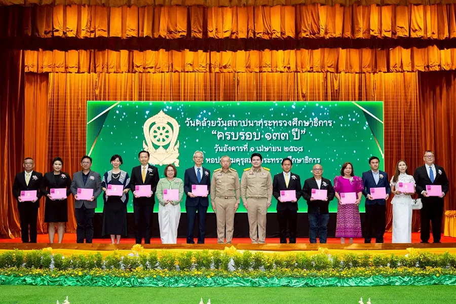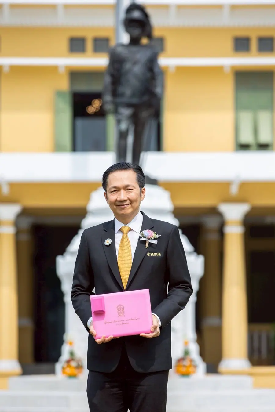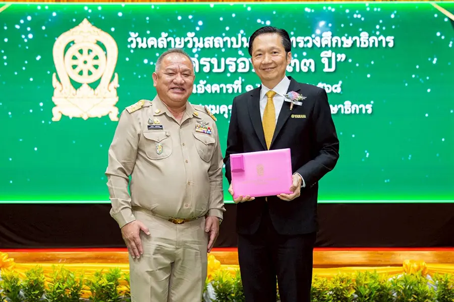 คุณพงศธร เอื้อมงคลชัย ประธานกรรมการบริหาร บริษัท ไทยยามาฮ่ามอเตอร์ จำกัด ขึ้นรับรางวัลเข็มเสมาคุณูปการ และเกียรติบัตรผู้ทำคุณประโยชน์ให้กับกระทรวงศึกษาธิการ ประจำปี 2568 และถ่ายภาพร่วมกับ พล.ต.อ.เพิ่มพูล ชิดชอบ รัฐมนตรีว่าการกระทรวงศึกษาธิการ