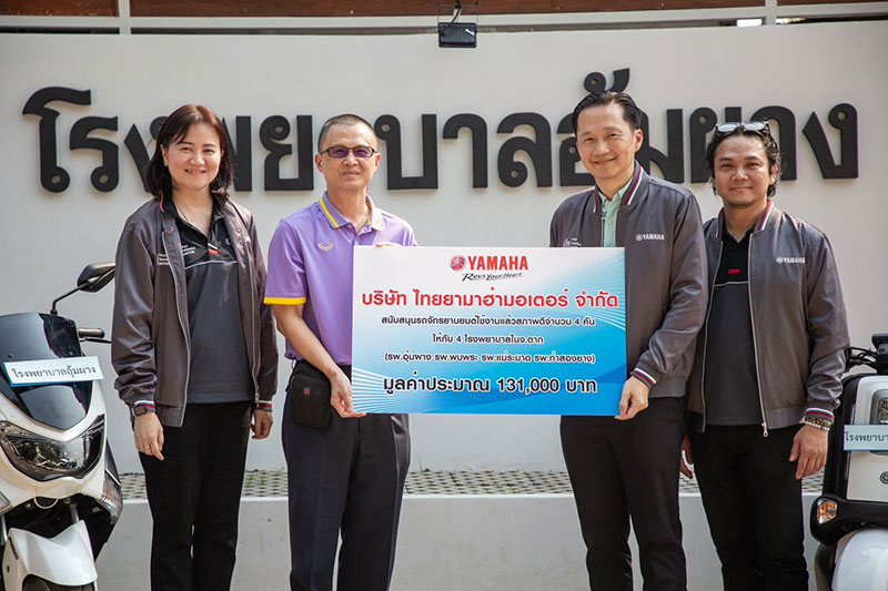 นายพงศธร เอื้อมงคลชัย ประธานกรรมการบริหาร นายจิรภัทร สายเพชร ผู้จัดการทั่วไปฝ่ายการตลาด กลุ่มรถออโตเมติก และสนับสนุนการตลาด นางสาวอัญชลี ศรีพิทักษ์ ผู้จัดการกลุ่มงาน บริหารตราสินค้า ประชาสัมพันธ์ และลูกค้าสัมพันธ์ บริษัท ไทยยามาฮ่ามอเตอร์ จำกัด ร่วมกันมอบรถจักรยานยนต์เที่ใช้ในกิจกรรมการตลาดของทางบริษัทฯ และยังคงอยู่ในสภาพดี ให้กับโรงพยาบาลทั้ง 4 แห่งในจังหวัดตาก ได้แก่ โรงพยาบาลอุ้มผาง โรงพยาบาลพบพระ โรงพยาบาลแม่ระมาด และโรงพยาบาลท่าสองยาง รวมมูลค่ากว่า 131,000 บาท เพื่อนำไปใช้ประโยชน์ด้านต่างๆ ที่เป็นภารกิจของโรงพยาบาล โดยมีนายแพทย์ วรวิทย์ ตันติวัฒนทรัพย์ ผู้อำนวยการโรงพยาบาลอุ้มผาง เป็นตัวแทนในการรับมอบในครั้งนี้